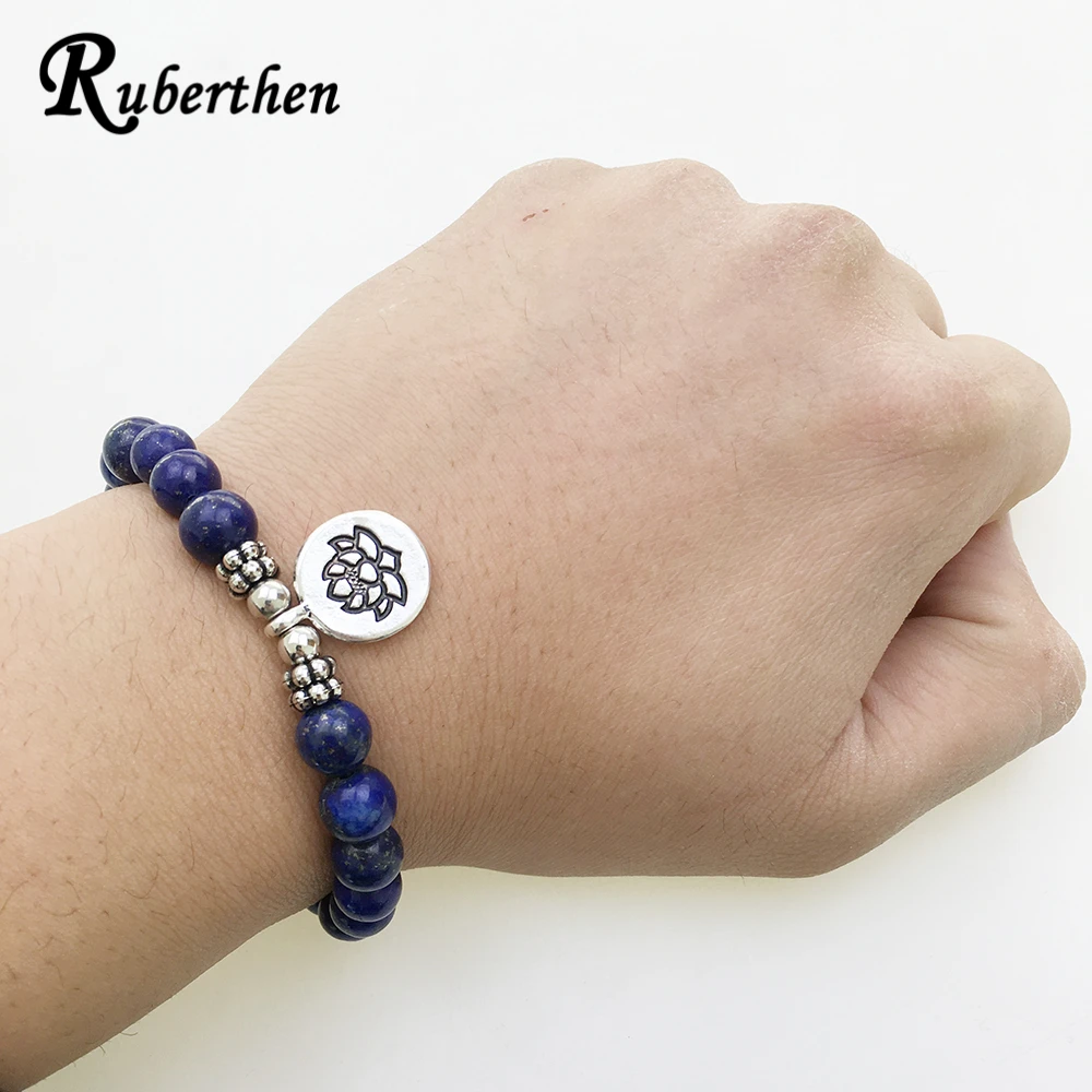 Ruberthen High Quality Lapis Lazuli Bracelet Natural Stone Bead Mens Bracelet Throat Chakra Spiritual Gift for Him