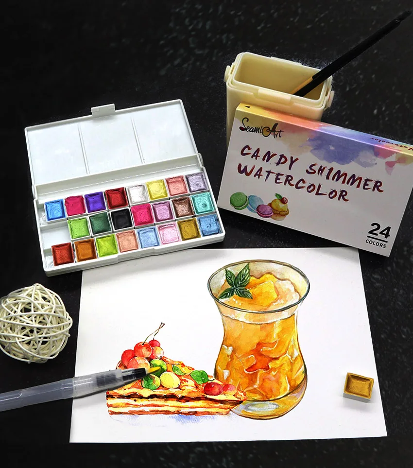 Seamiart 12/24 Watercolor Paint Set Metallic Glitter For Artists School Stationery Graffiti Tool Solid Pigment Art Supplies