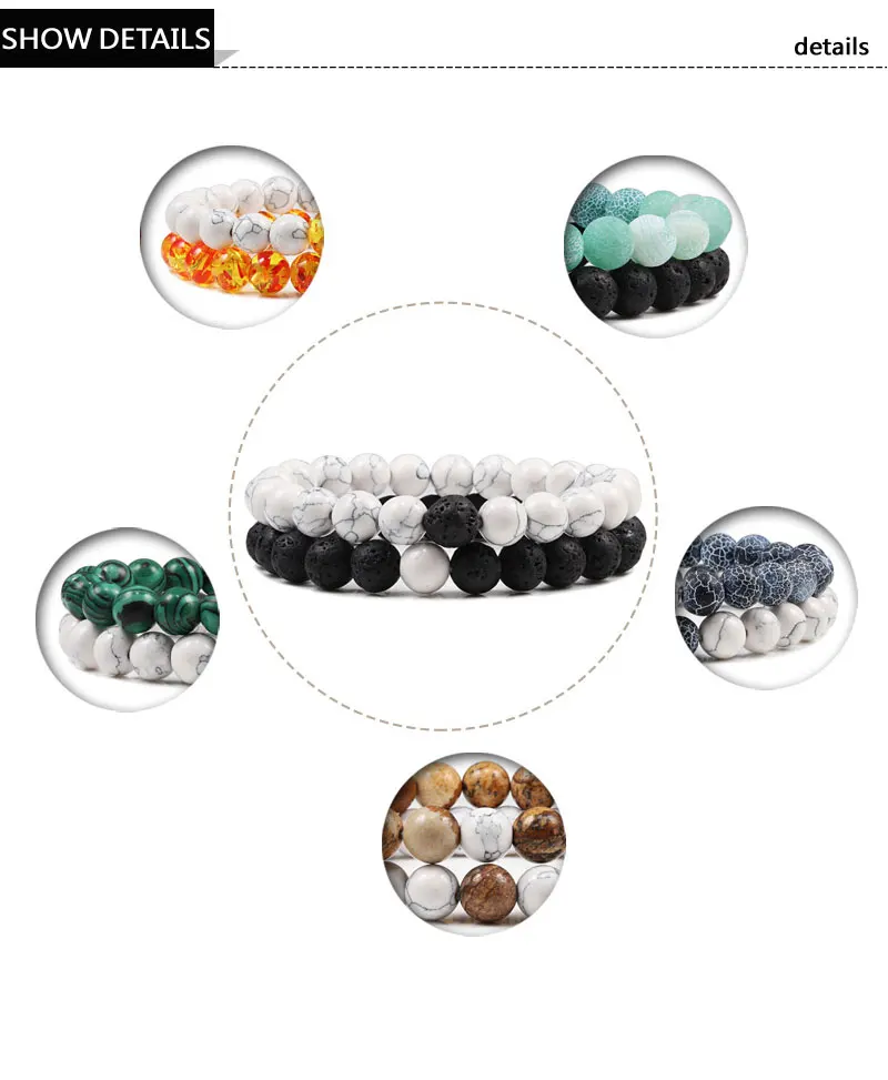 Set Bracelet Couples Distance Black White Natural Lava Stone Tiger Eye Beaded Yoga Bracelets for Men Women Elastic Rope Jewelry
