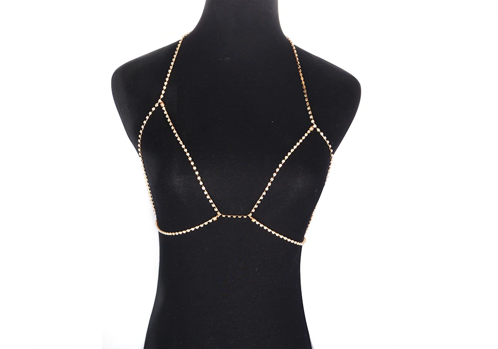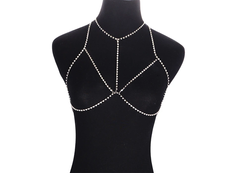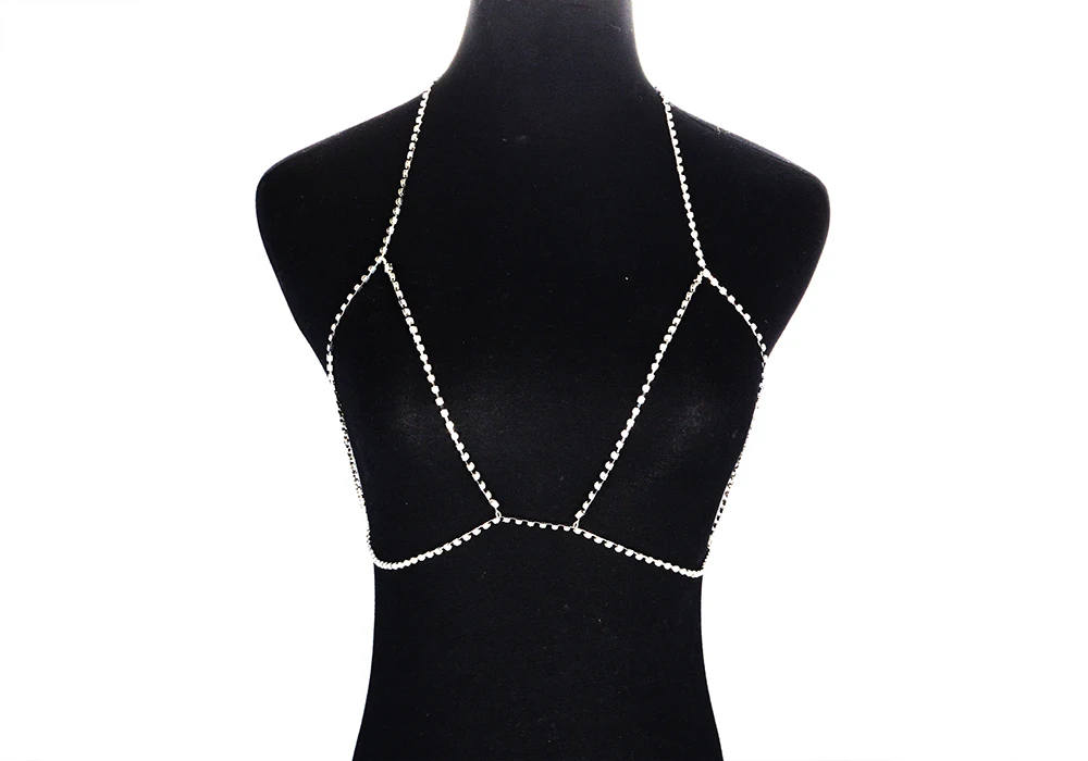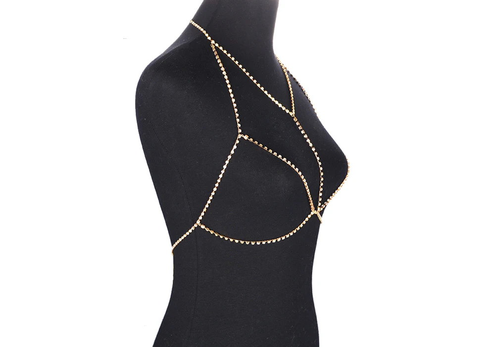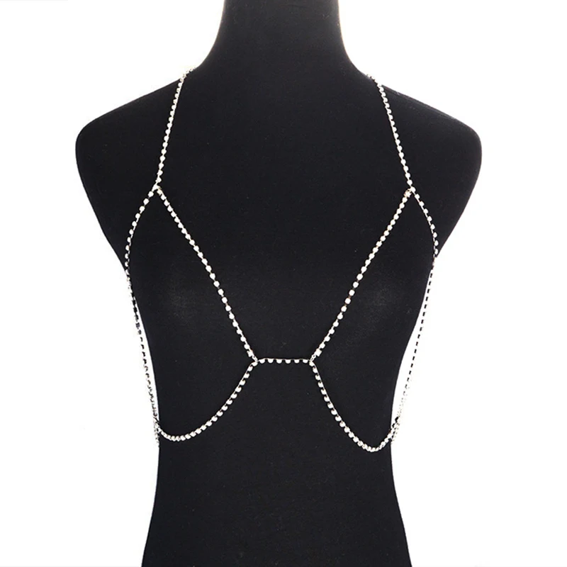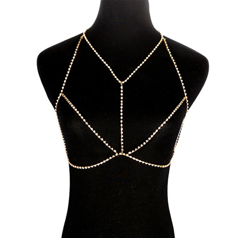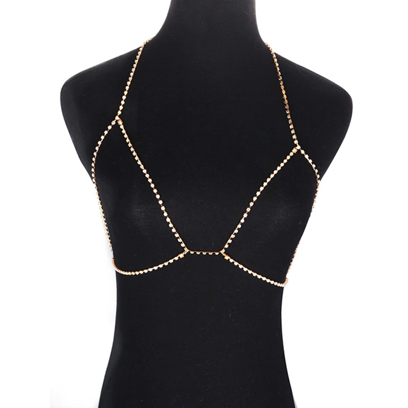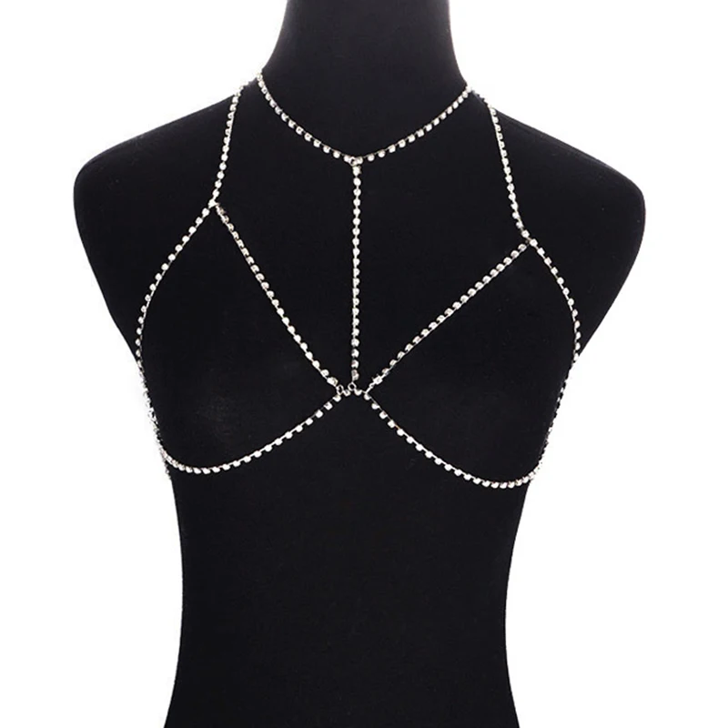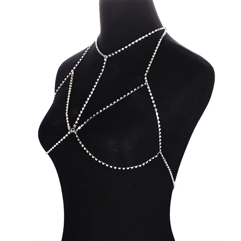 Sexy Crystal Bra Body Chain Bikini Twisted Necklace for Women Rhinestone Cross Belly Body Jewelry Chest Chain Jewelry Accessory