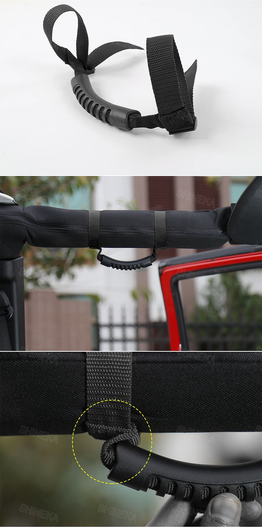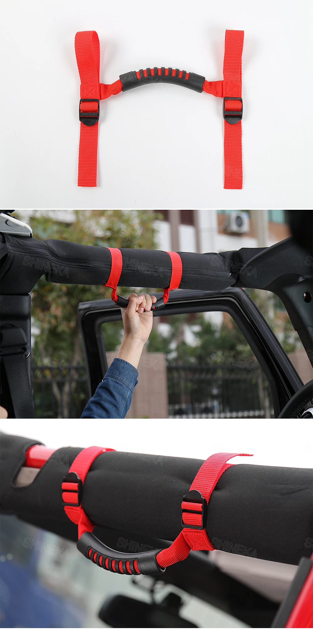 SHINEKA 4x4WD Armrest Top Grab Handles Grip Bar Pulling Tab Roll Bar Mount For Jeep Wrangler CJ TJ JK JL Sports Sahara Rubicon