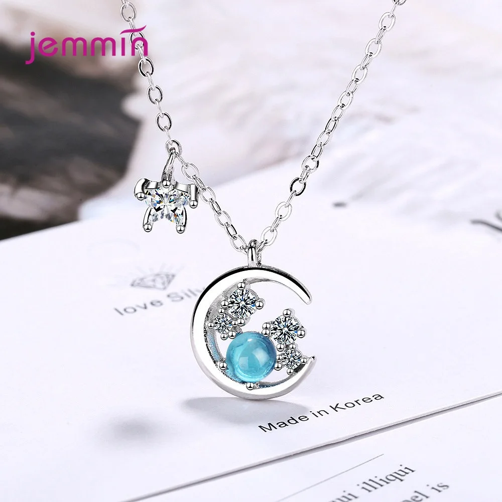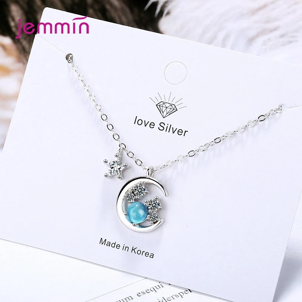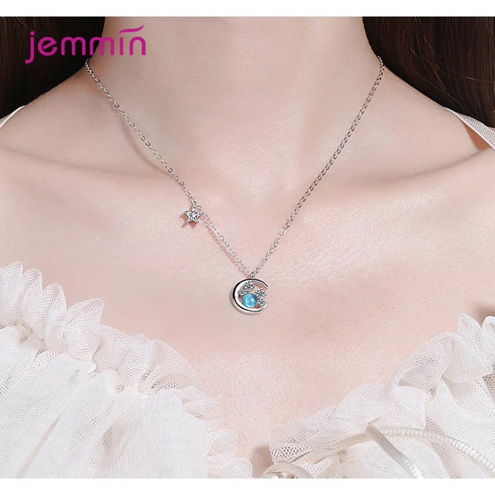 S925 Sterling Silver Necklace Stud Earring Set for Women Girls Engagement Gift White Round Pearl Fashion Jewelry 2Pcs/Set