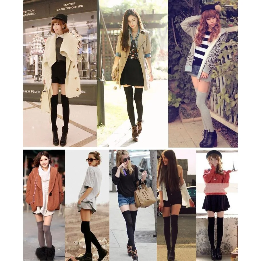 Women Girls Over Knee Long Stripe Printed Thigh High Striped Cotton Socks