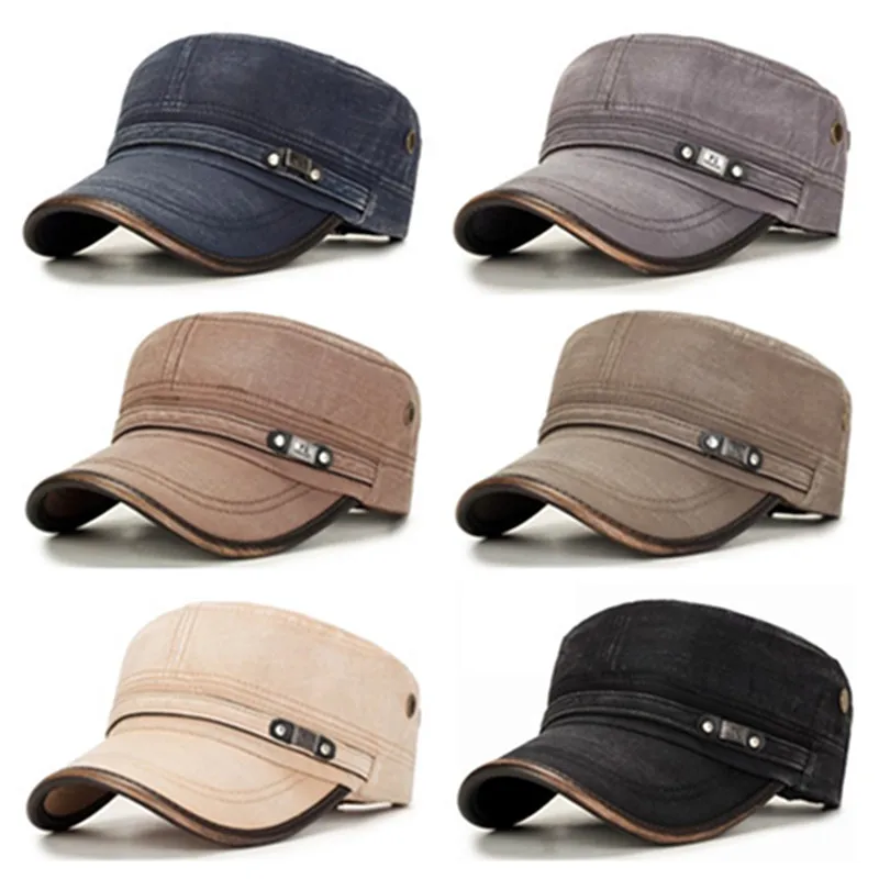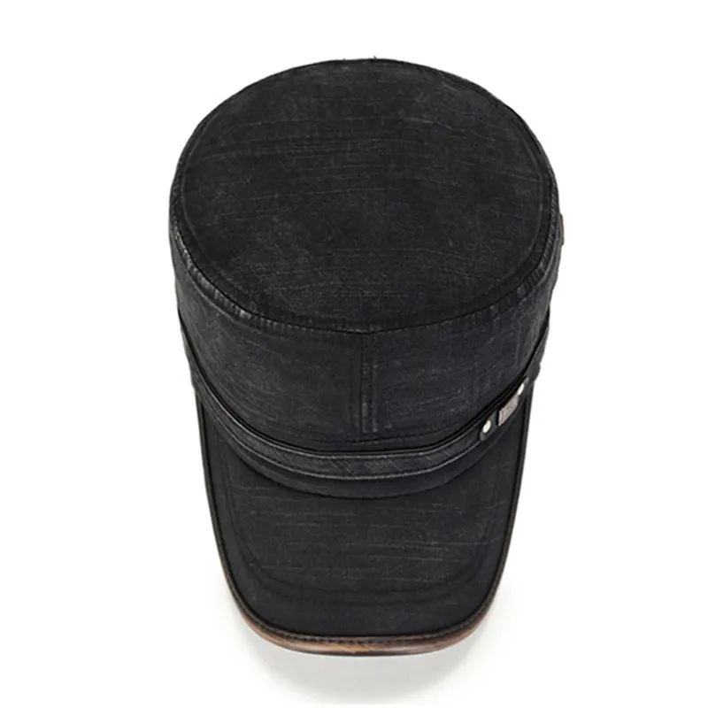 TOHUIYAN Classic Woolen Military Hat Vintage Flat Top Caps Winter Warm Earflap Hats Men Army Cap Fashion Adjustable Cadet Hats