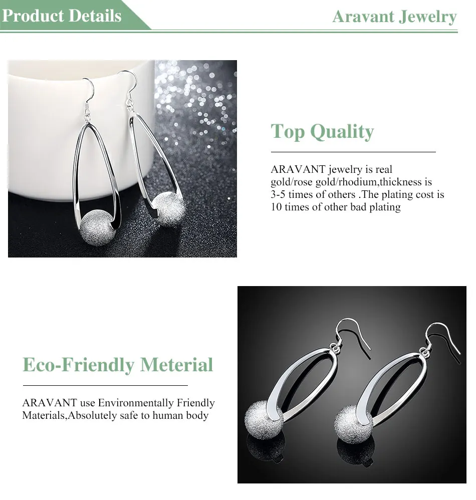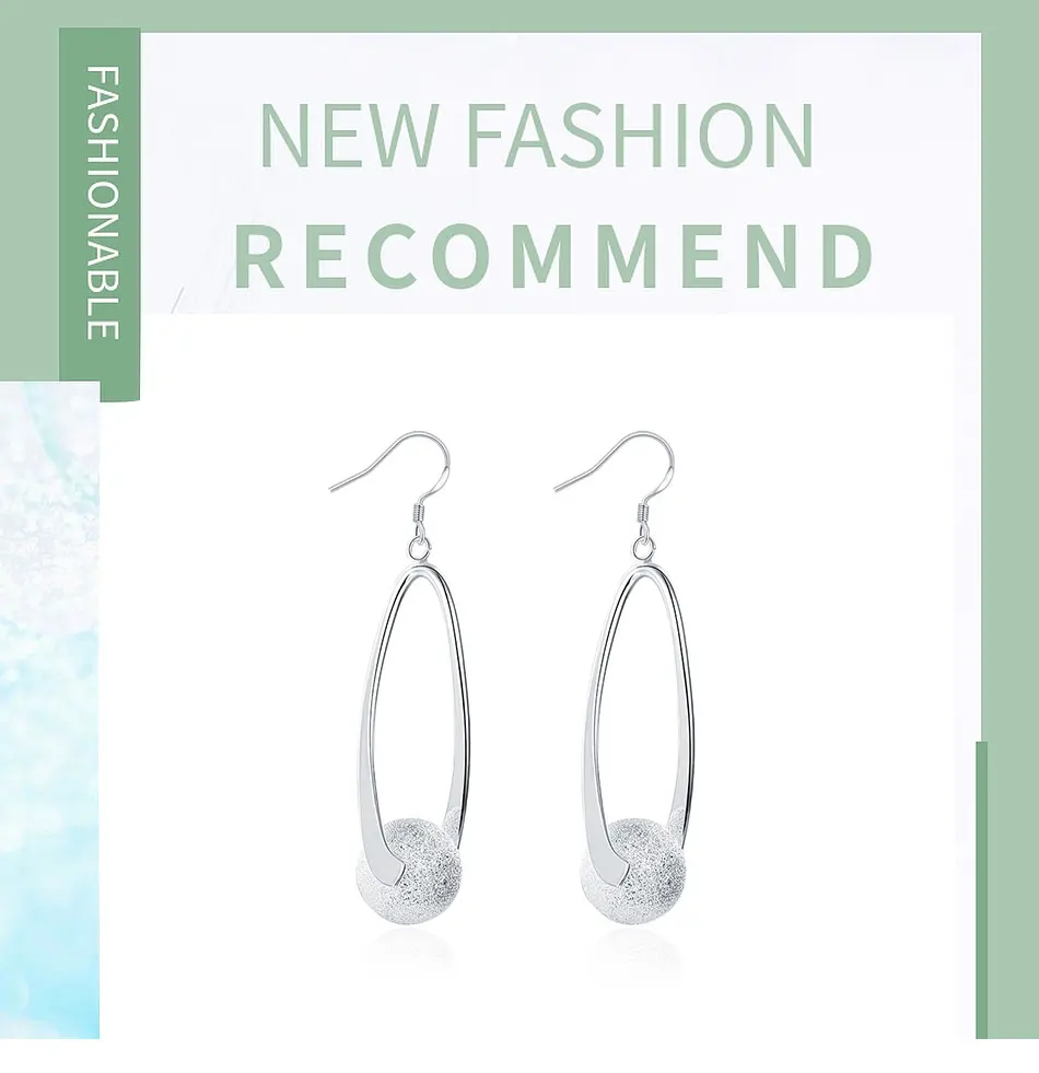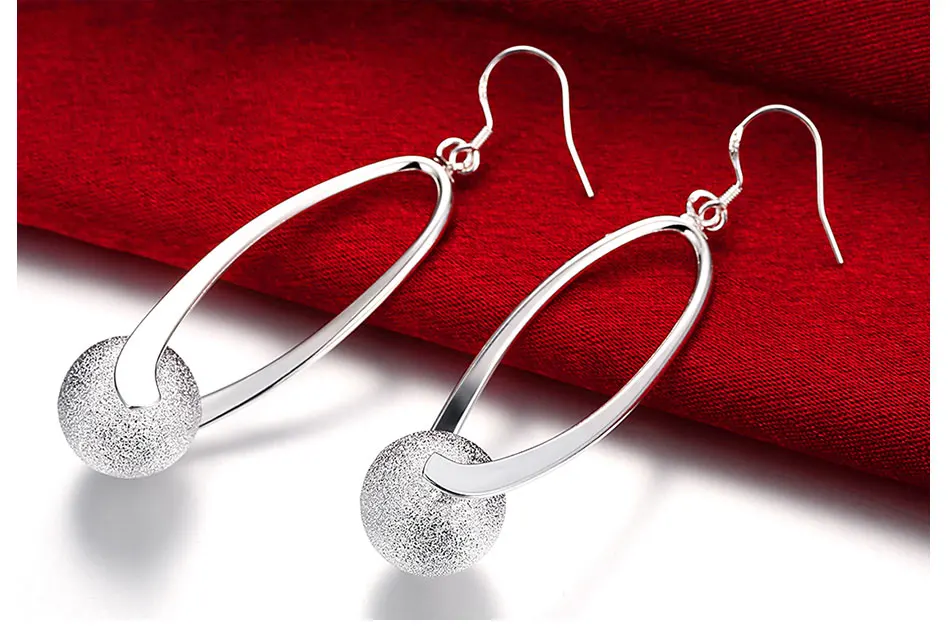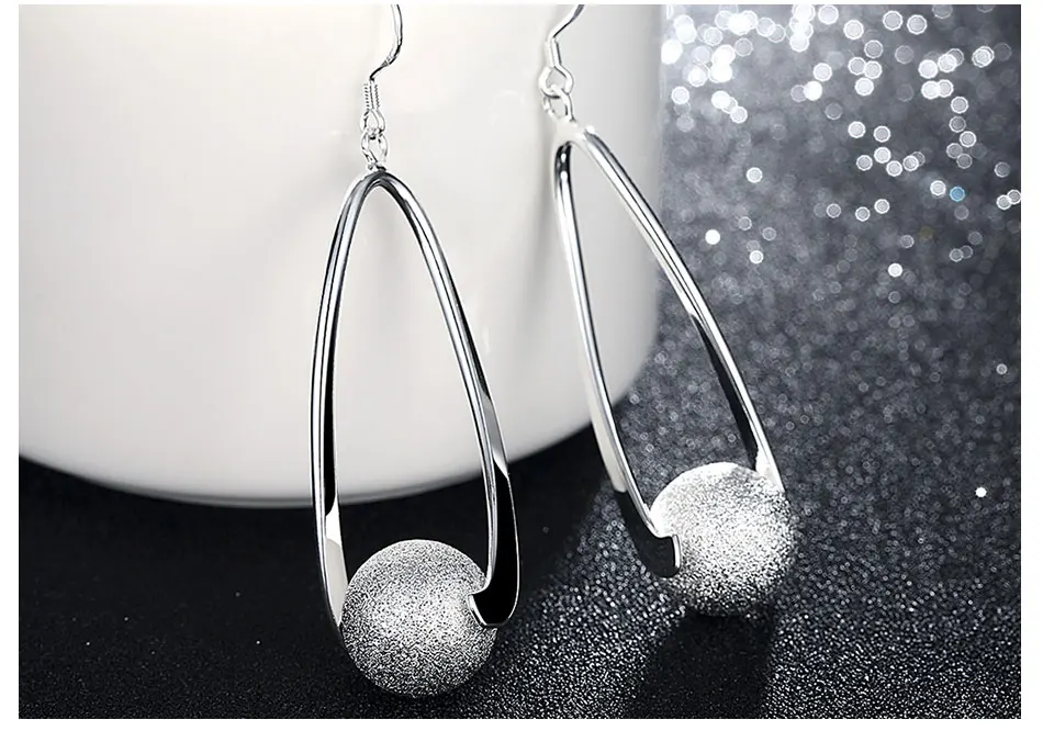 Silver 925 Jewelry Earrings Long Sanding Ball Earring For Women Wedding Fashion Jewelry