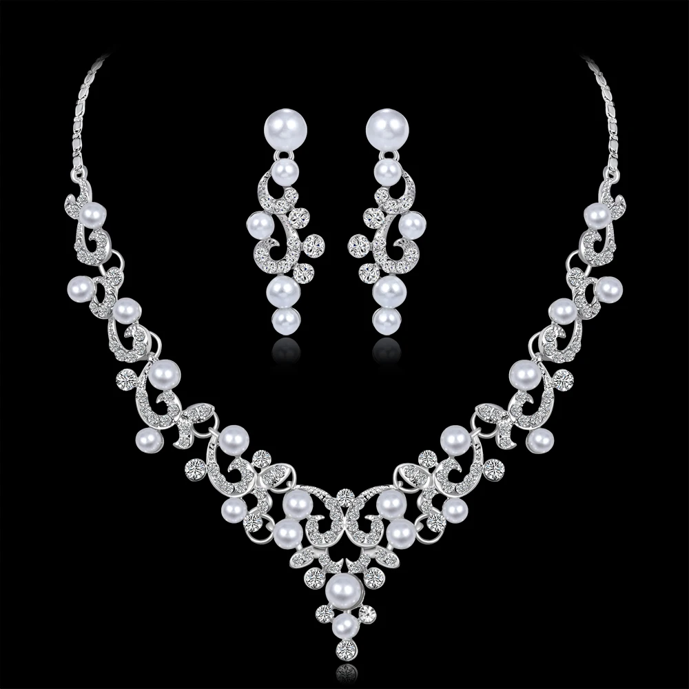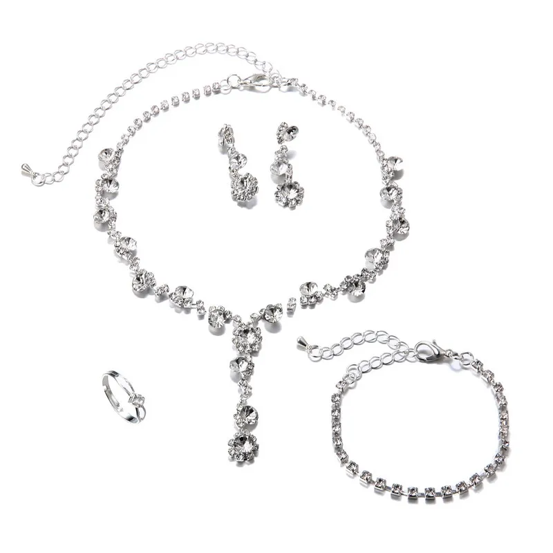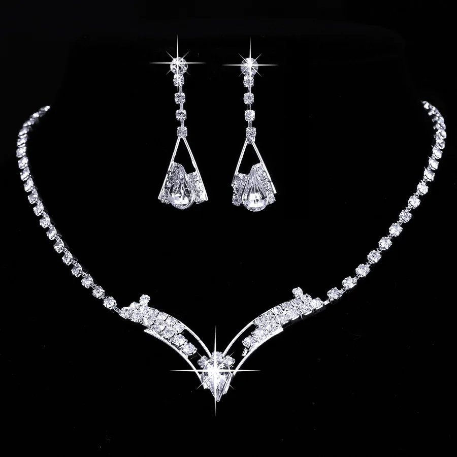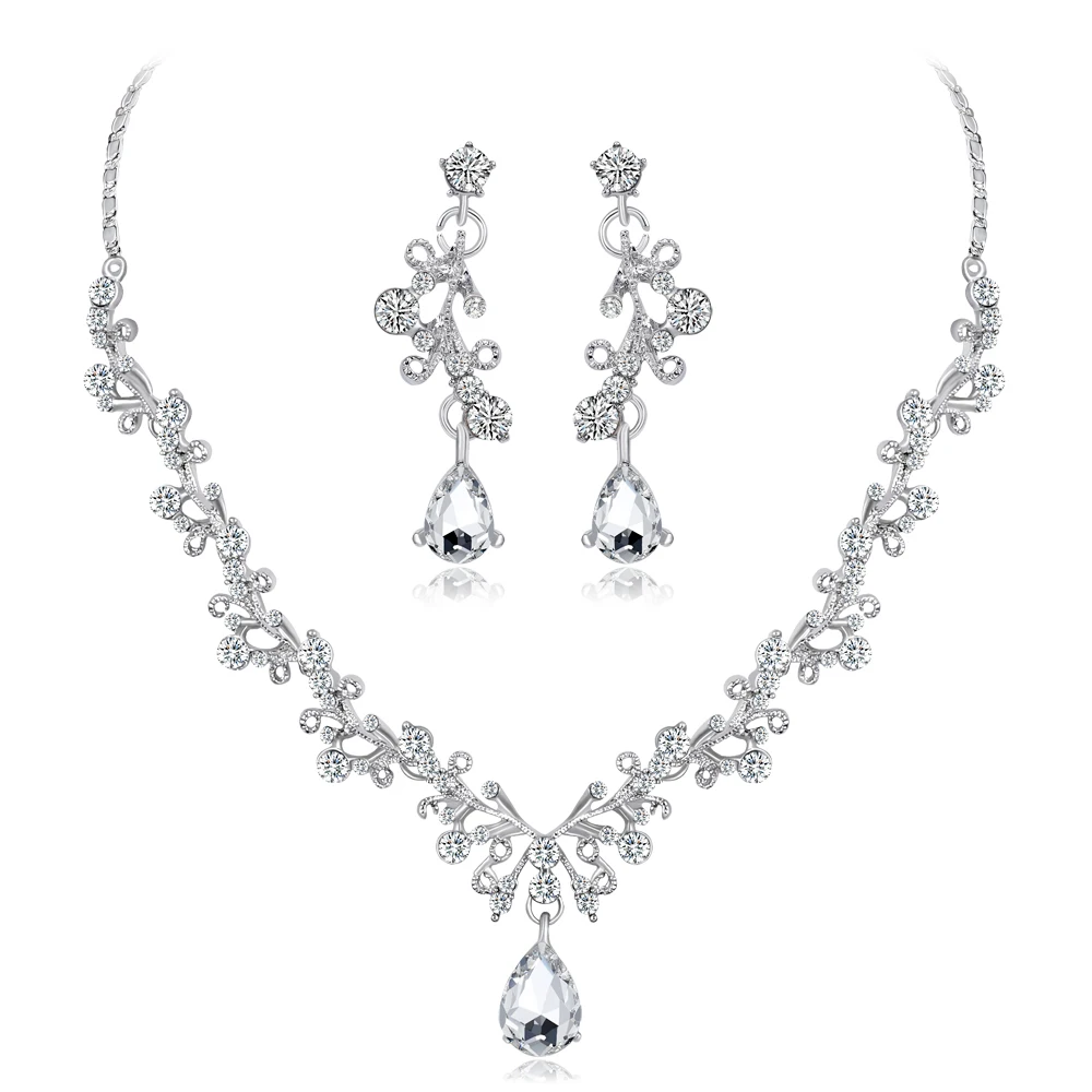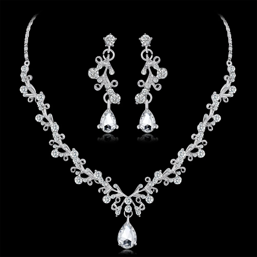 Silver Tone Crystal Tennis african jewelry sets Earrings wedding jewelry necklace bridesmaid jewelry sets for women necklace