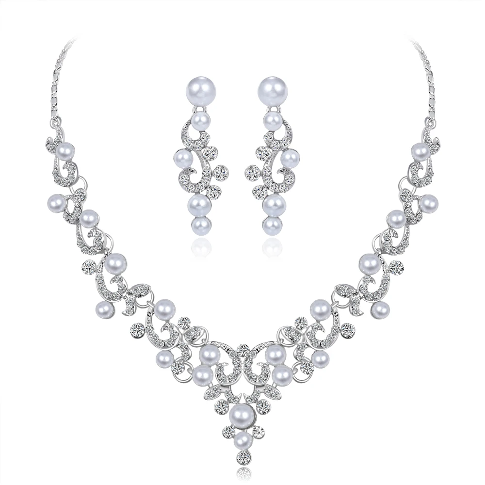 Silver Color Tone Crystal Tennis african jewelry set Earring wedding jewelry necklace bridesmaid jewelry sets for women necklace