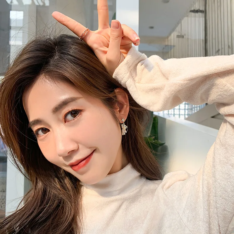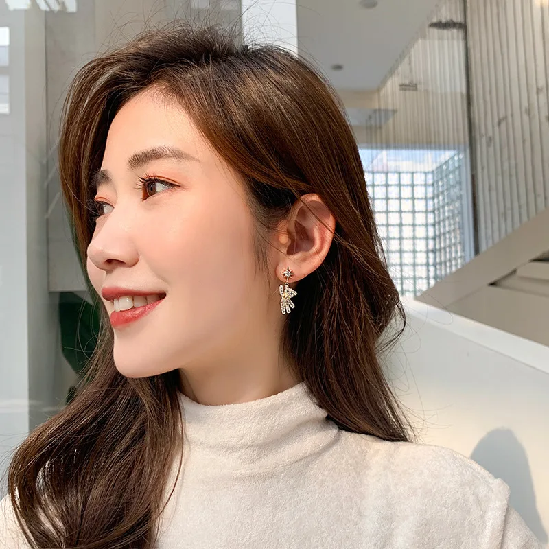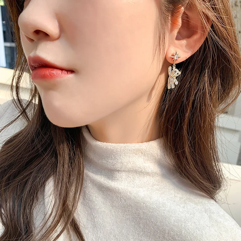 Simple Cute Full Semi-precious Stones Little Bear Earrings Temperamental Sweet Eight-pointed Star Glistens Dangle Earrings