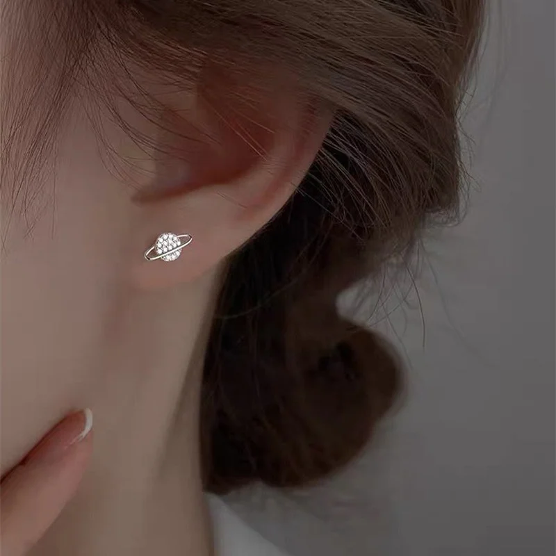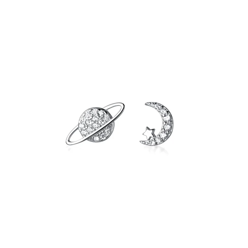 Exquisite Blue Cat's Eye Stone Moon Star Planet Earrings Creative Univers Star River Earrings Sweet Bowknot Stud Earring Gifts
