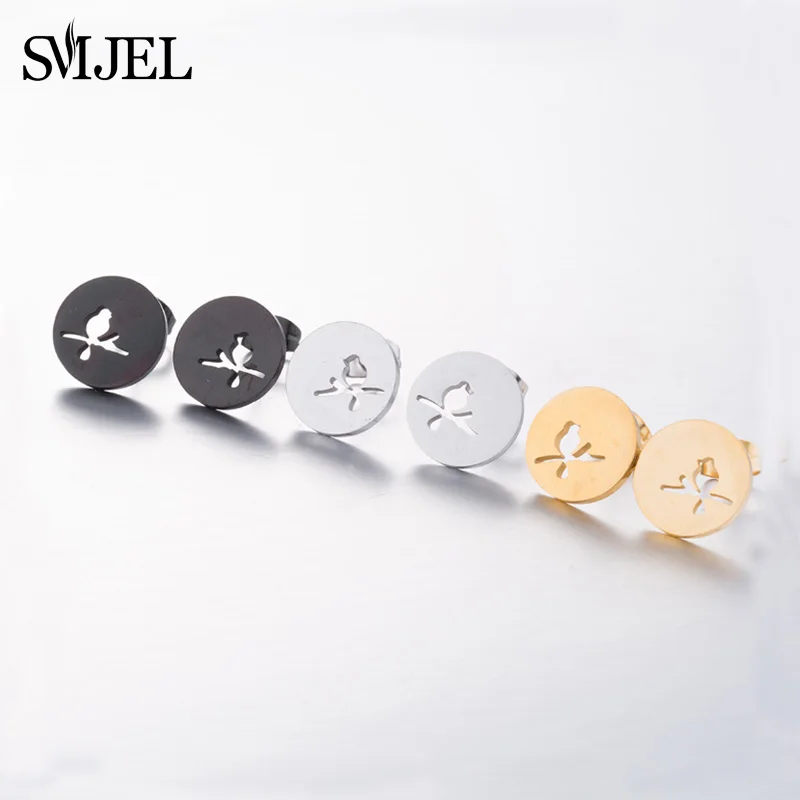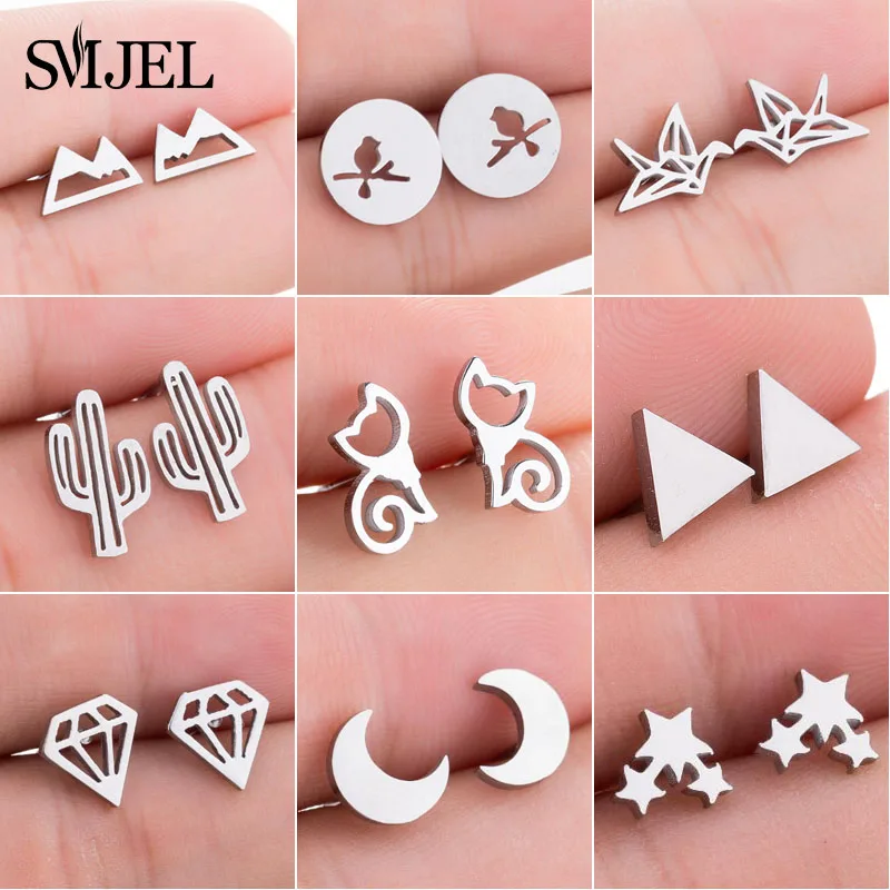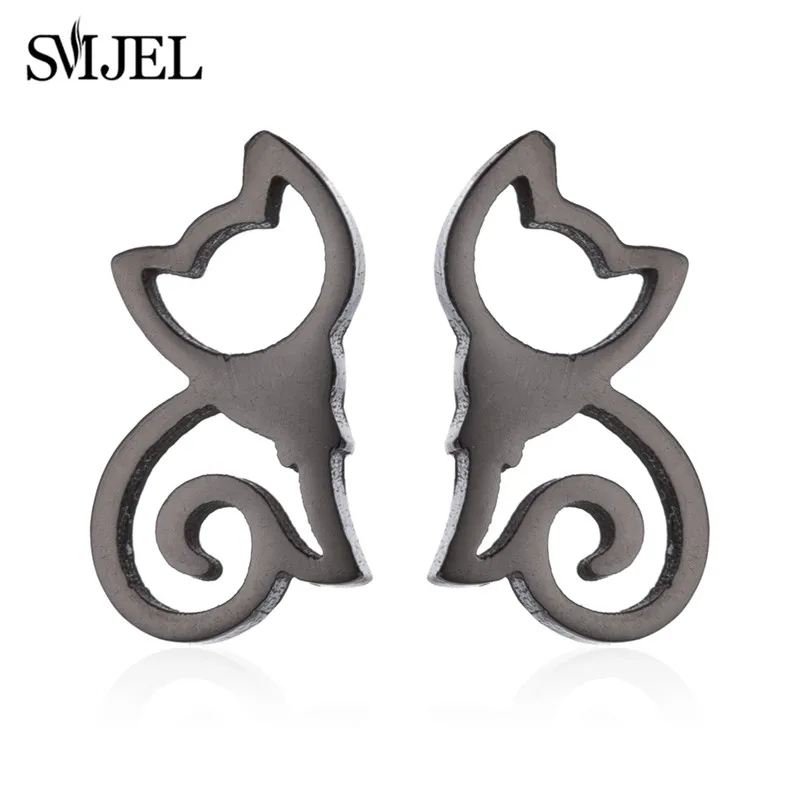 SMJEL Fashion Cute Animal Stud Earrings for Women Kids Stainless Steel Jewelry Cat Moon Star Earings Jewelry Accessories Gifts