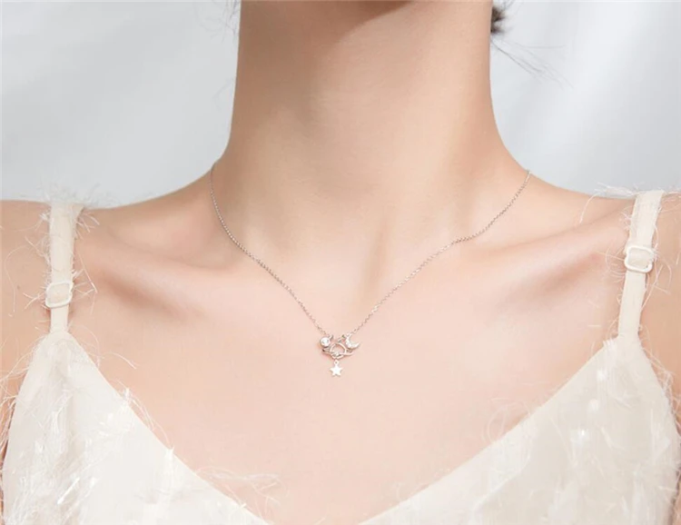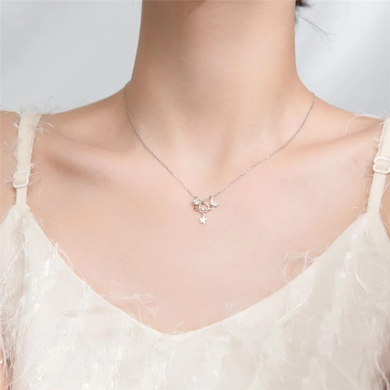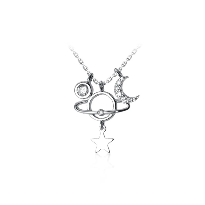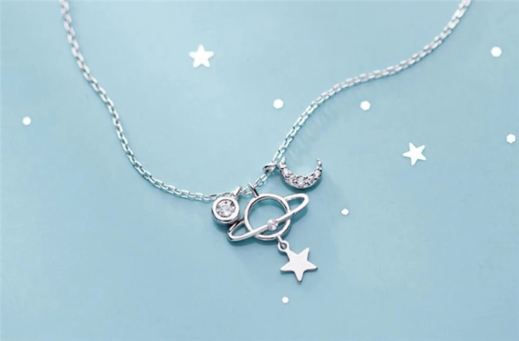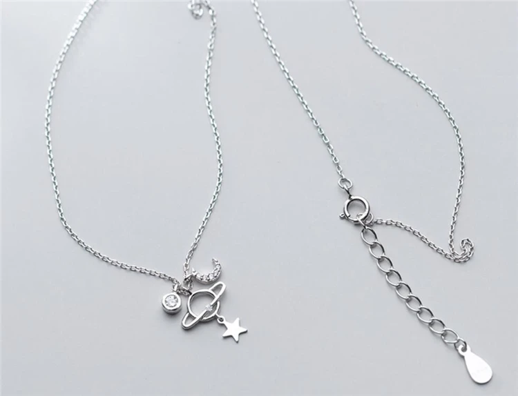 Sole Memory Trend Stars Moon Planet Universe Simple Cute 925 Sterling Silver Clavicle Chain Female Necklace SNE464
