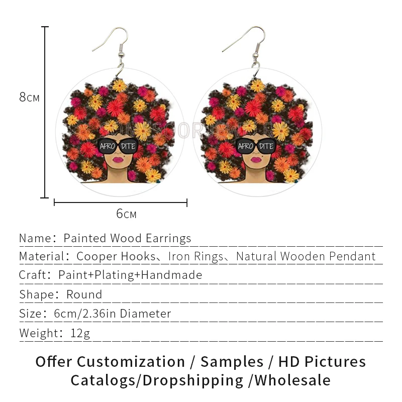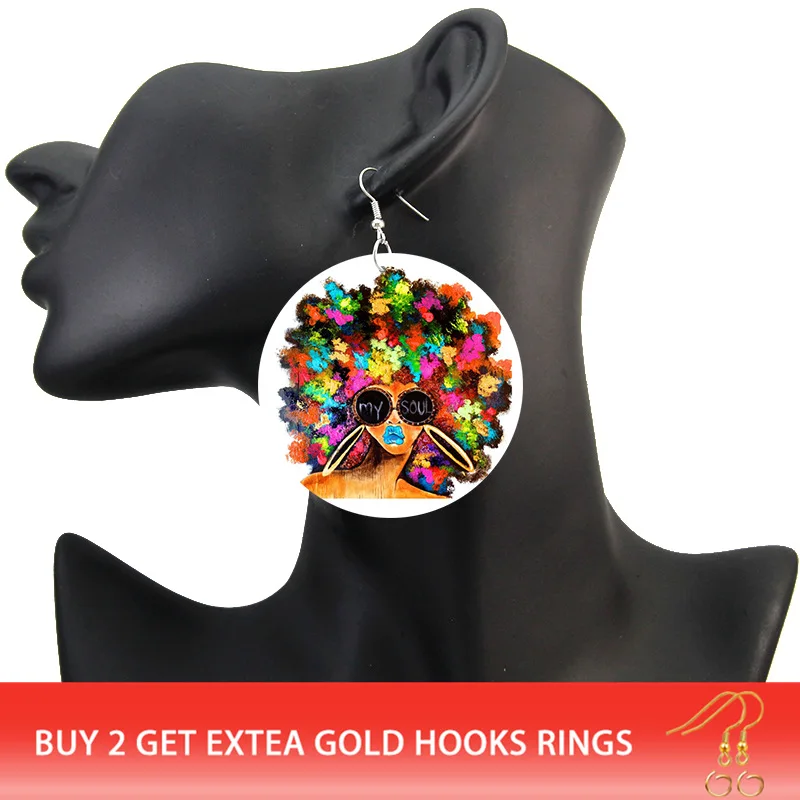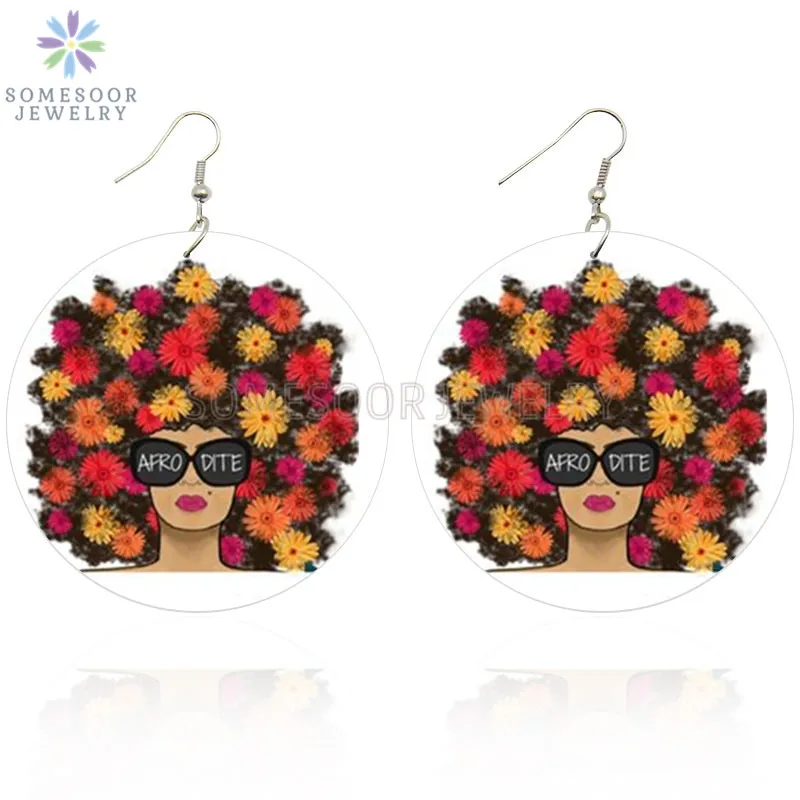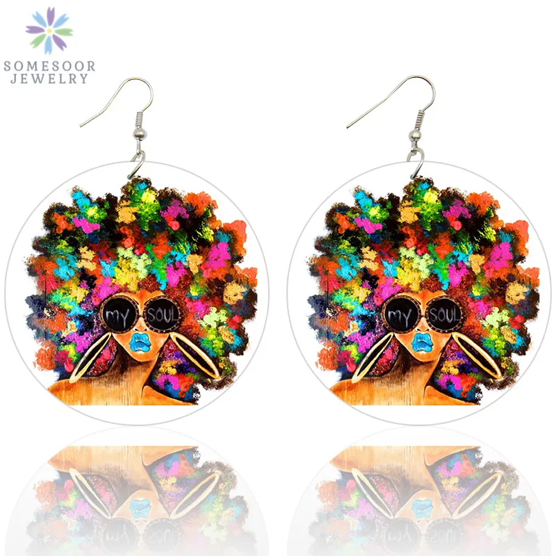 SOMESOOR AFRO DITE My Soul Natural Hair Wooden Drop Earrings Cool Black Woman Design Photos Wood Ear Dangle For Women Gift
