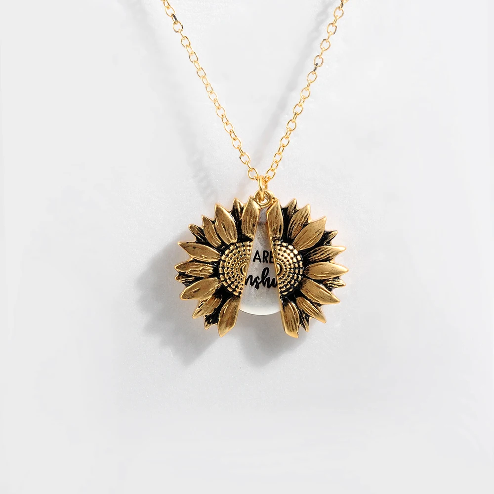New Vintage Double Layered Sunflower Silver Chain Satellite Bead Choker Women Pendant Necklaces Simple Dainty Jewelry Gifts
