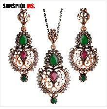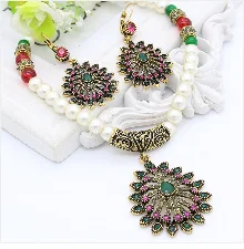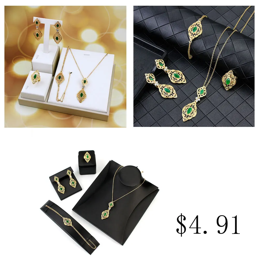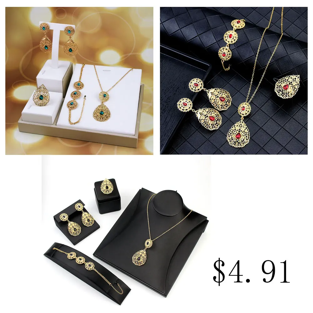 “Product Description: Gold Color Arabic Necklace Earring Cuff Bracelet Women Ethnic Wedding Jewelry Sets Morocco Caftan Fashion Accessories”