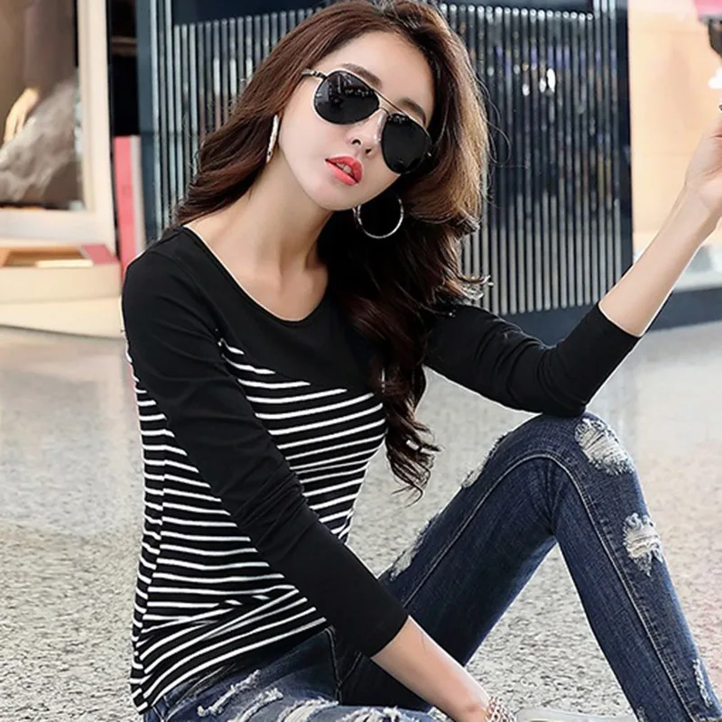 T Shirt Women Top Shirts Long sleeve Casual Tshirt Striped Female O-neck T-Shirt Women's Tops Tee Shirt Femmel