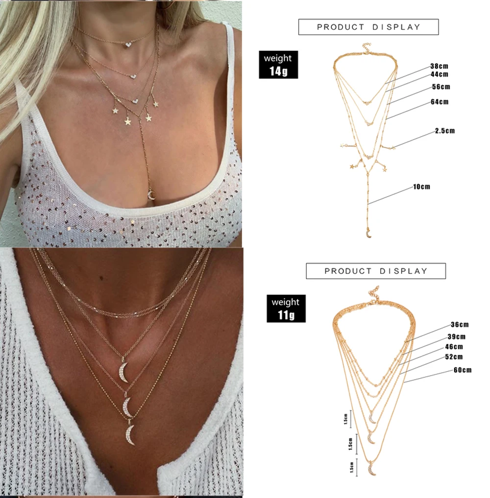 Bohemian Multi-layer Moon Star Necklace For Women Gold Color 2020 Vintage Pendants Necklaces Geometry Chokers Jewelry Gift