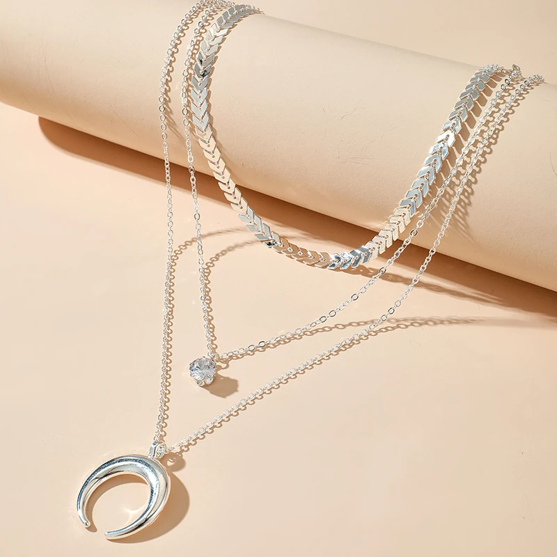 Retro Statement Moon Multi Layer Necklace Set For Women Bohemian Vintage Jewelry Disc Pendant Necklace Stacked Boho Jewelry