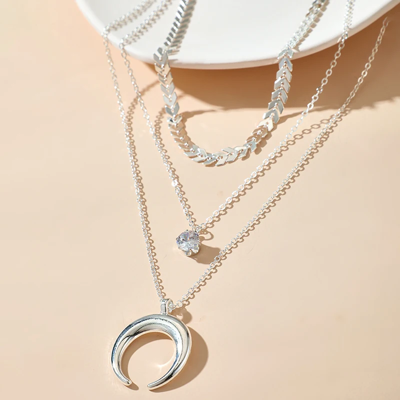 Retro Statement Moon Multi Layer Necklace Set For Women Bohemian Vintage Jewelry Disc Pendant Necklace Stacked Boho Jewelry