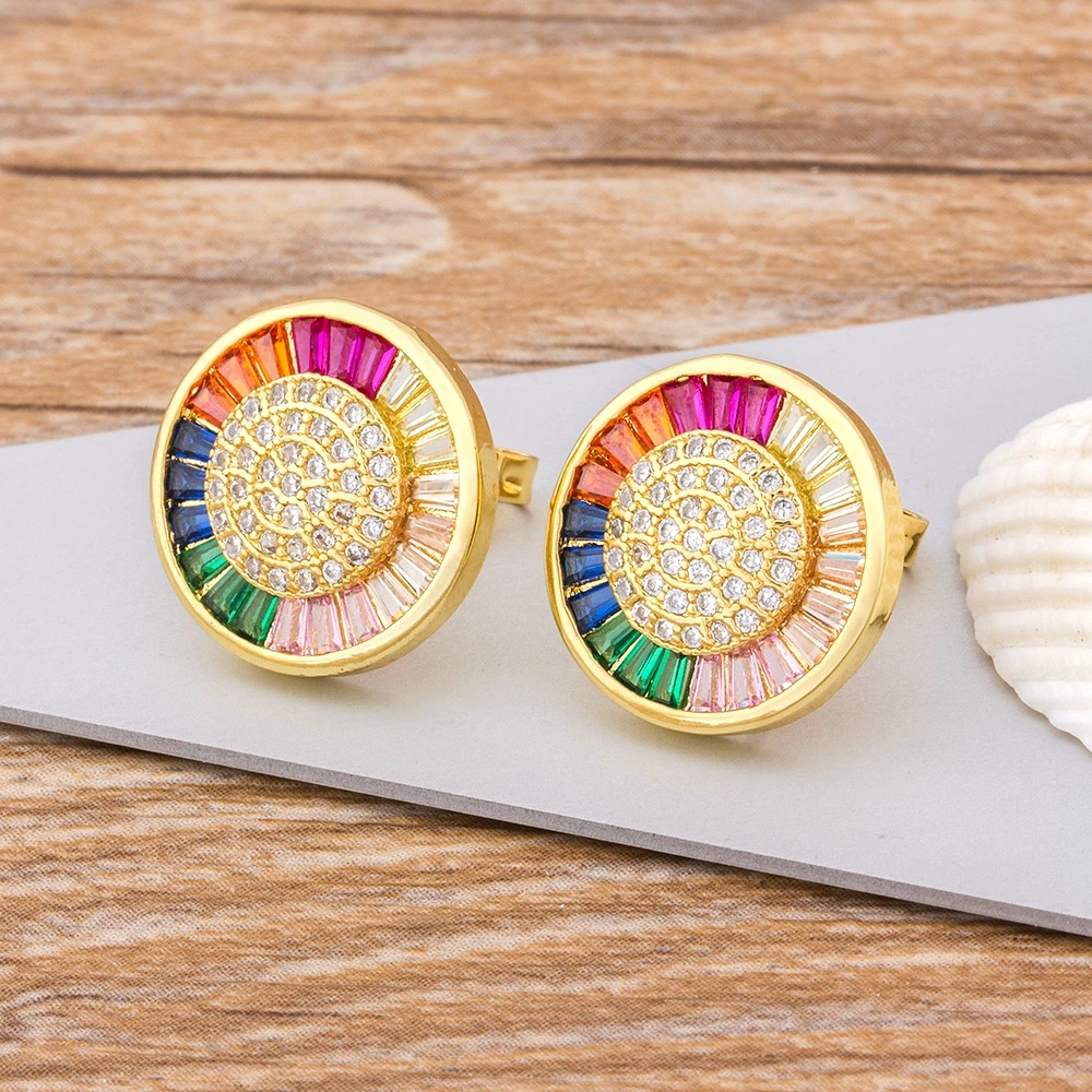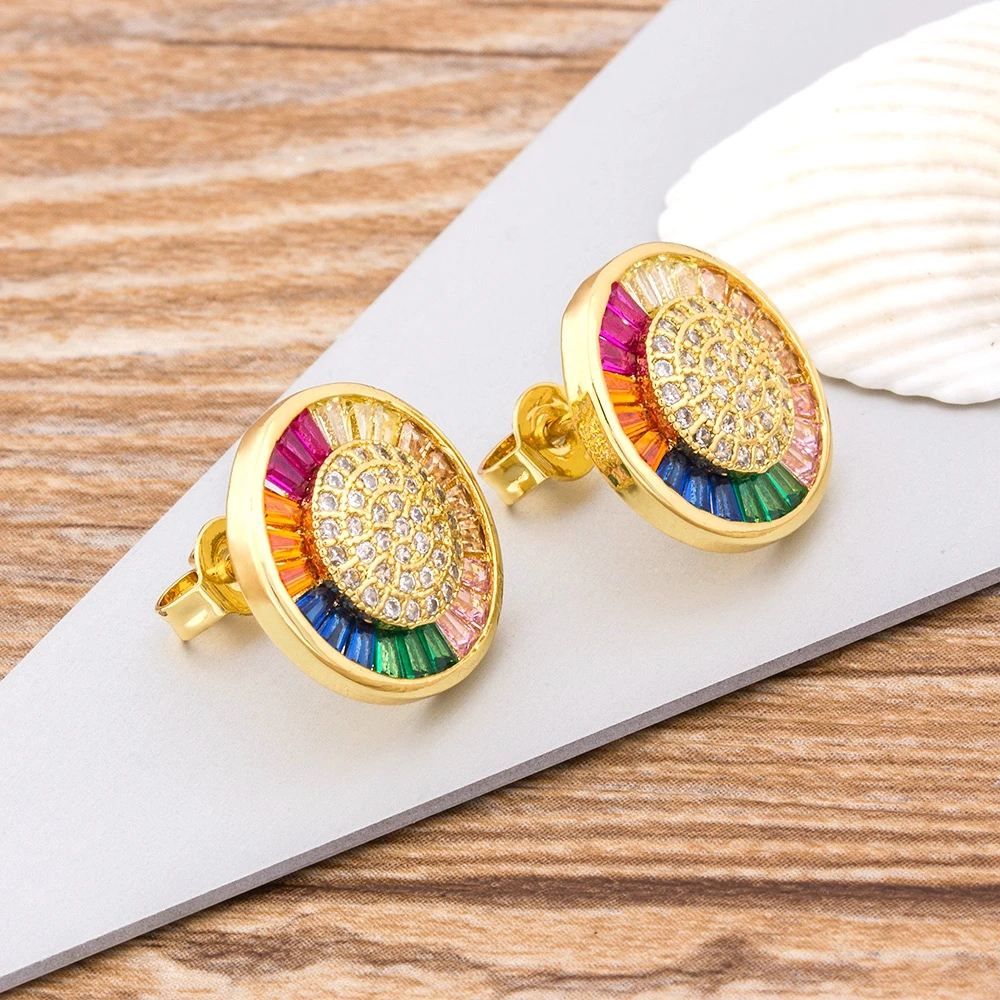 Top Quality Delicate Copper Zircon Crystal Round Stud Earrings Rainbow Color Romantic Love Earrings For Women Girls Gift