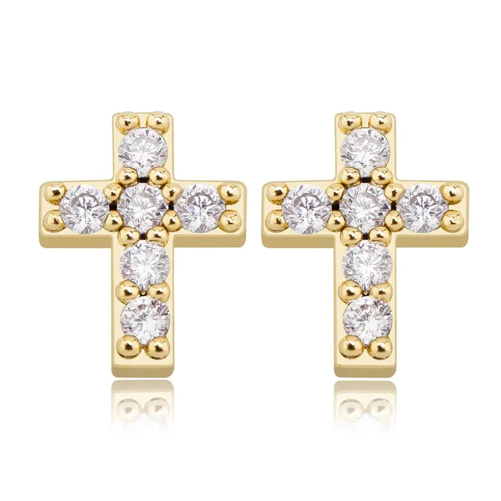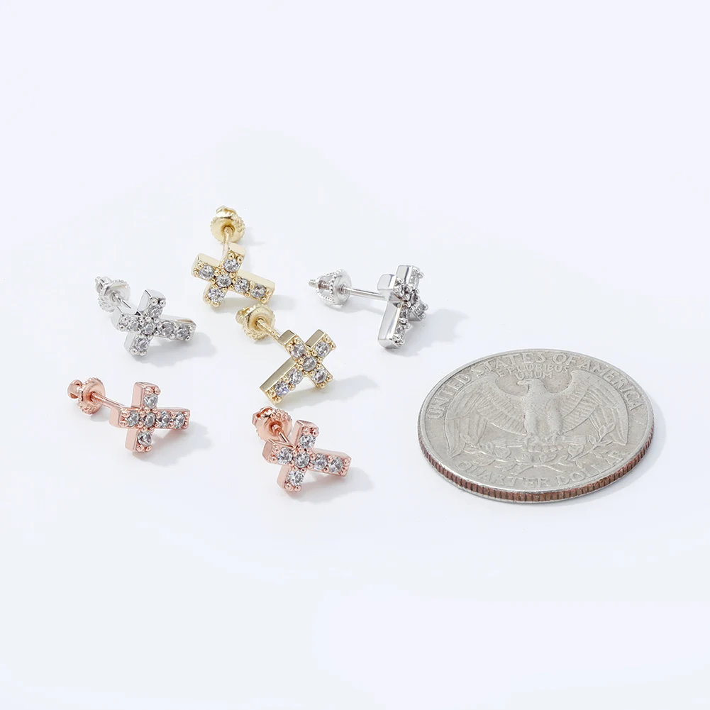 TOPGRILLZ Minimalist 925 Silver Cubic Zirconia Stud Earrings For Women Simple Geometric Cross Earrings Hip Hop Fashion Jewelry