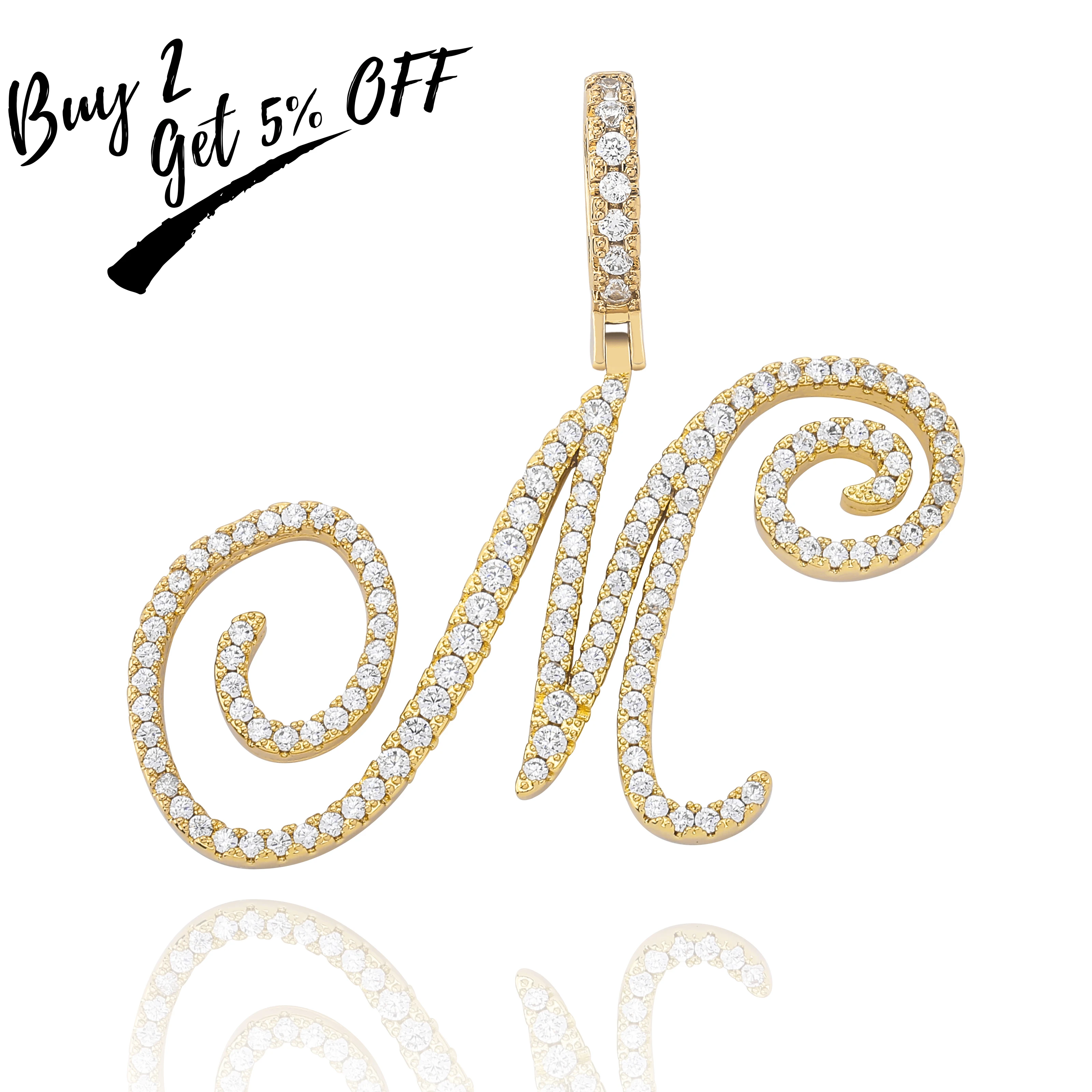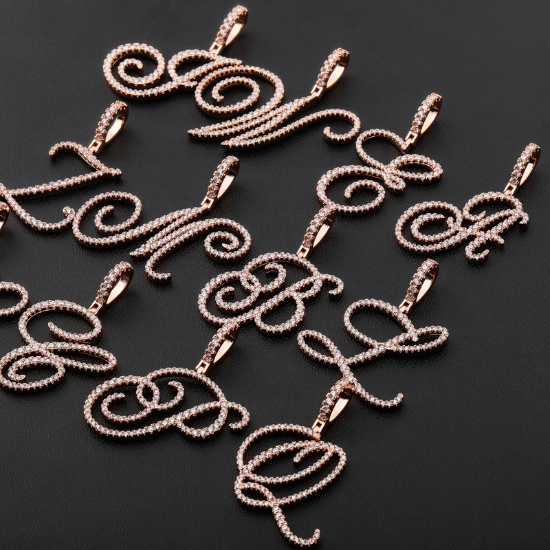 TOPGRILLZ New A-Z Cursive Letters Name Pendant&Necklace Iced Out Cubic Zircon Gold Silver Color Charm Hip Hop Jewelry