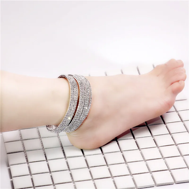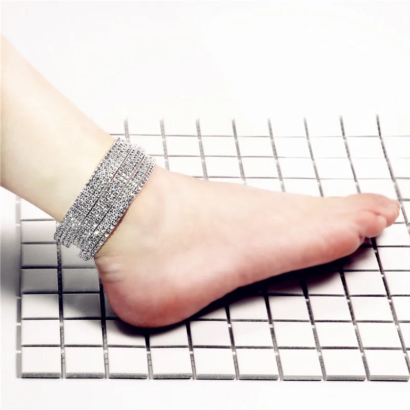 TREAZY Fashion Stretch Anklets Silver Color Women Crystal Ankle Bracelet Barefoot Sandals Pulseras Tobilleras Mujer Foot Jewelry