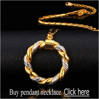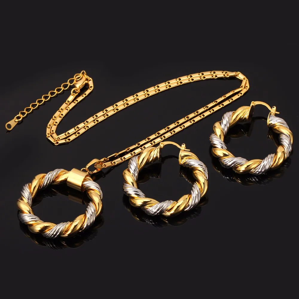 U7 Unique Two Tone Necklace Set For Women Trendy Round Pendant Necklace Earrings Fashion Yellow Gold Plated Jewelry Sets S544