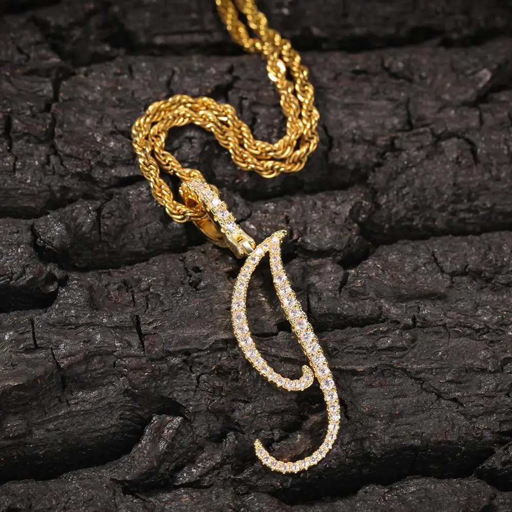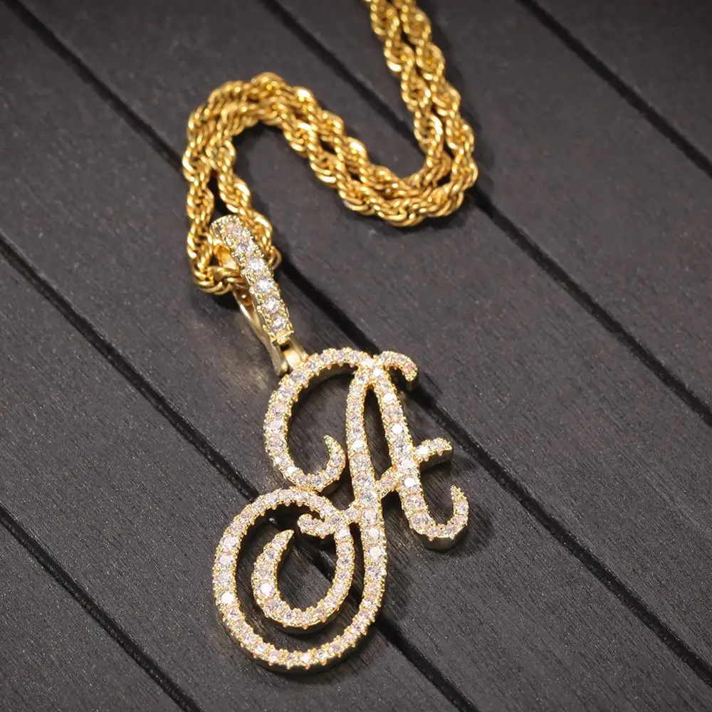UWIN Hip Hop Necklace A-Z Artistic Initial Letters Pendant Hip Hop Cubic Zircon Charm Jewelry Silver Color for Men and Women