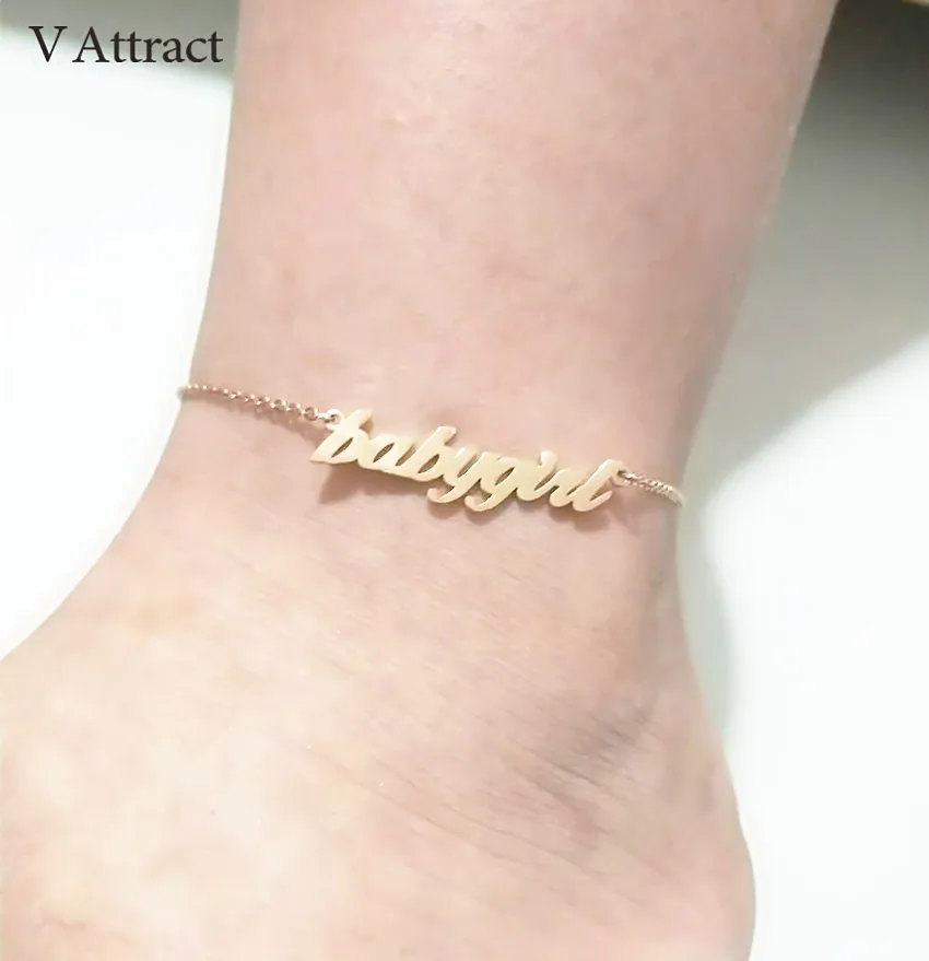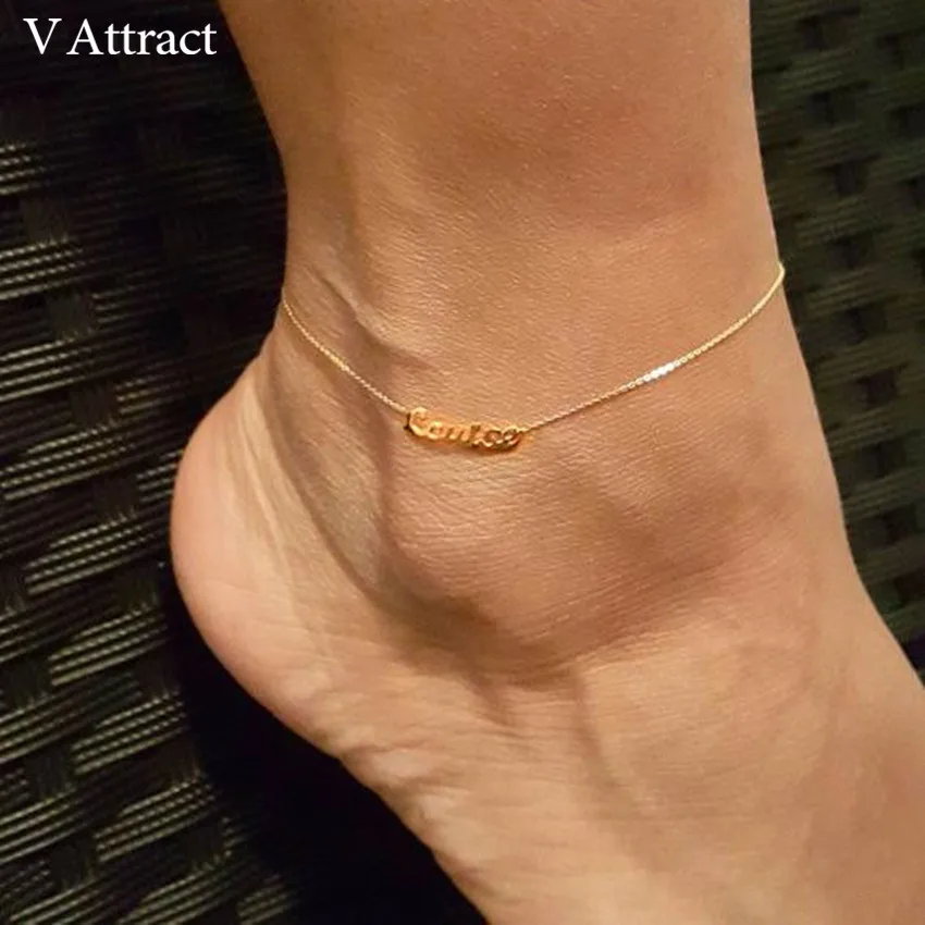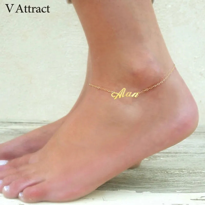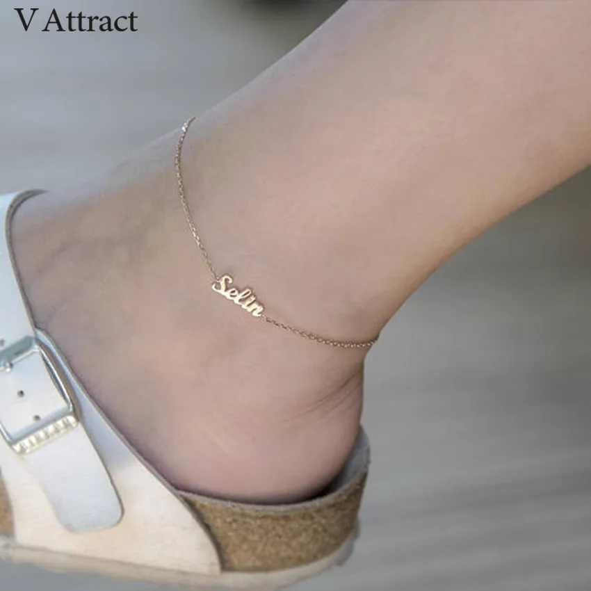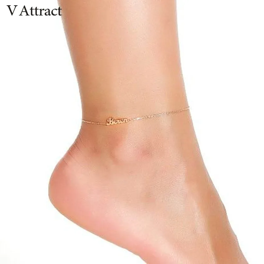 V Attract Personalized Name Anklet Bracelet Best Friends Beach Jewelry Graduation Gift Rose Gold Custom Name Foot Tornozeleira