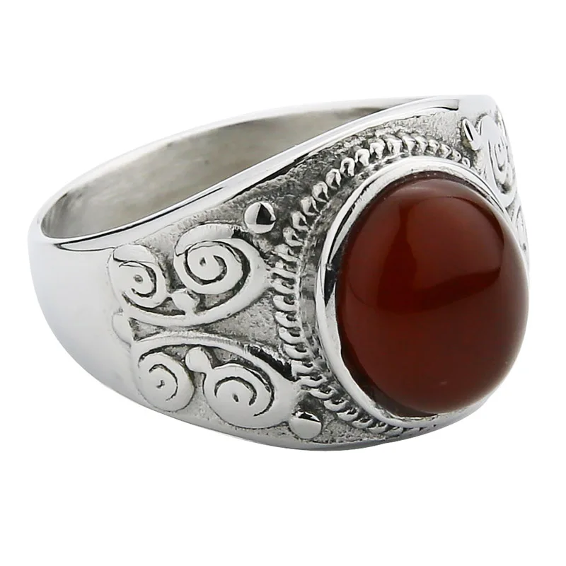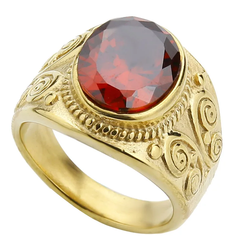 Valily Jewelry Simple Oval Tiger eye Silver Ring For Men Stainless Steel Trendy Red CZ Gold Wedding band Rings Women Jewelry