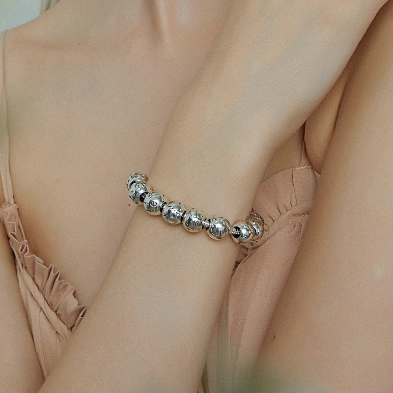 BAMOER Queen Jewelry Silver Plated Charms Bracelet & Bangles With Queen Crown Beads Bracelet for Women PA1823