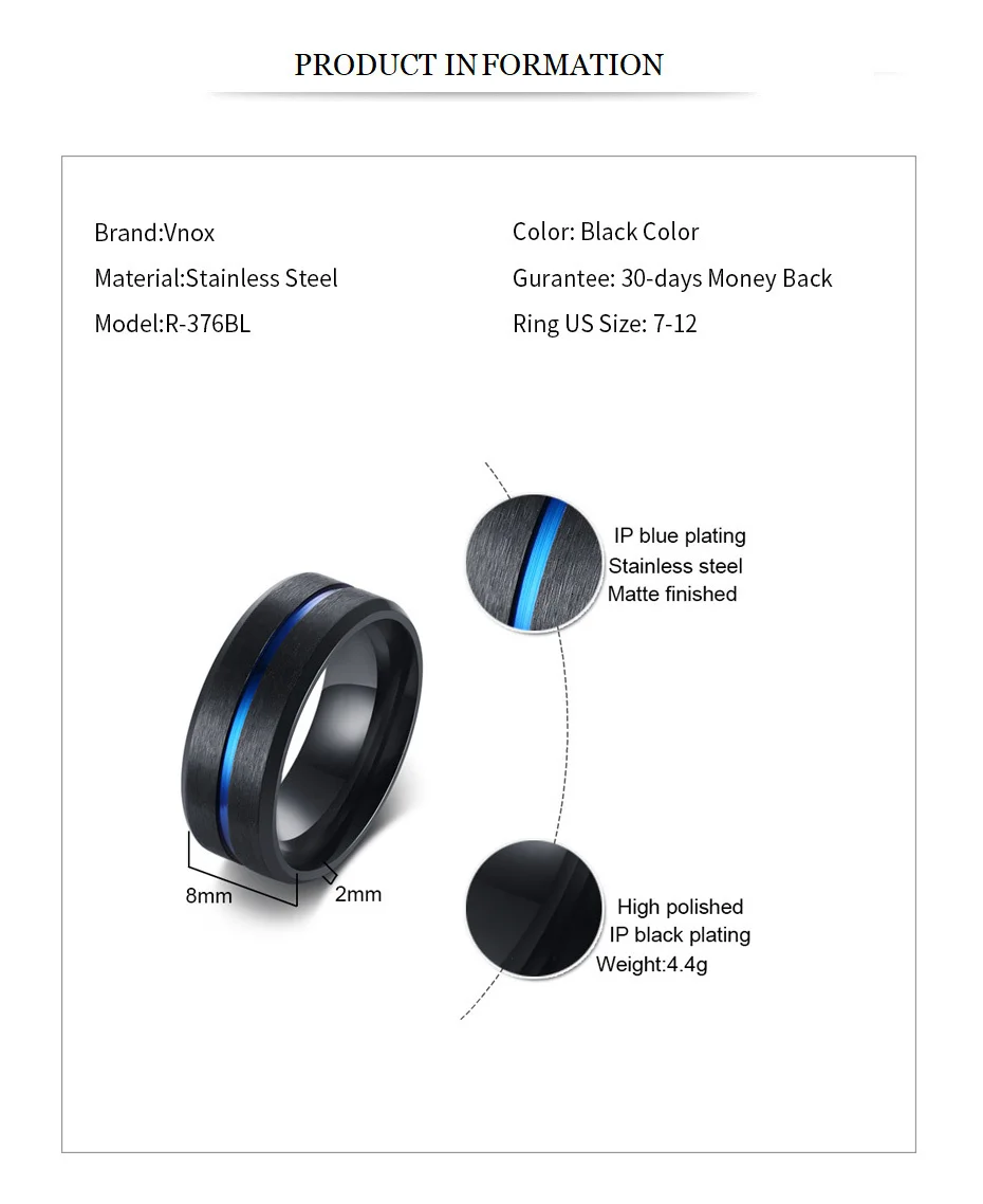 Vnox 8mm Black Ring for Men Women Groove Rainbow Stainless Steel Wedding Bands Trendy Fraternal Rings Casual Male Jewelry