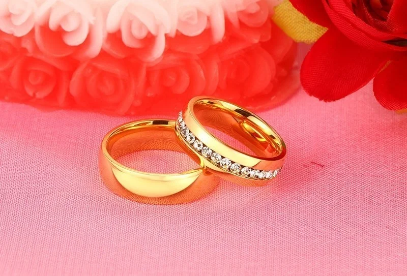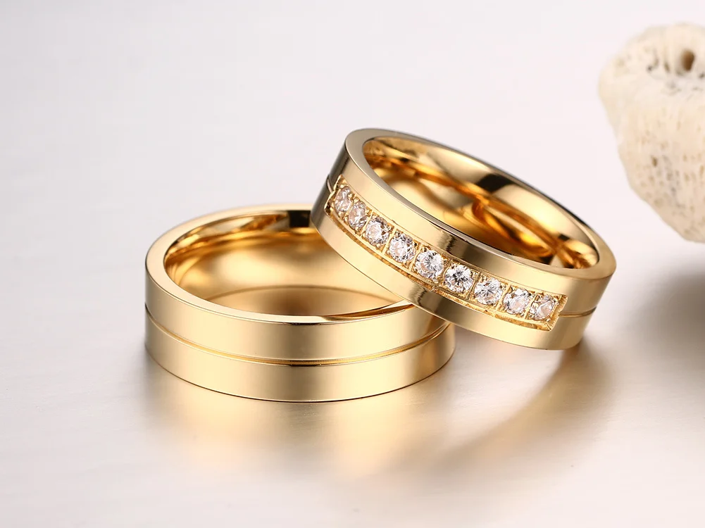Vnox Gold Color Wedding Bands Ring for Women Men Jewelry Stainless Steel Engagement Ring Couple Anniversary Gift Amazing Price