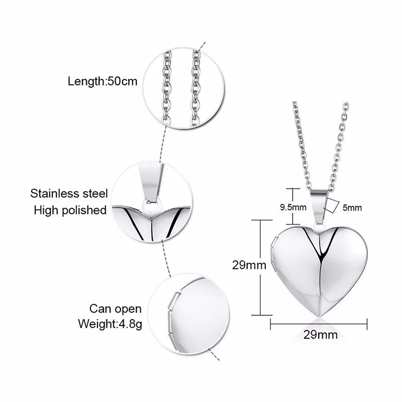 18 reviews for Vnox Light Heart Locket Pendants for Women Men Openable Photo Frame Glossy Stainless Steel Necklaces Family Love Collar