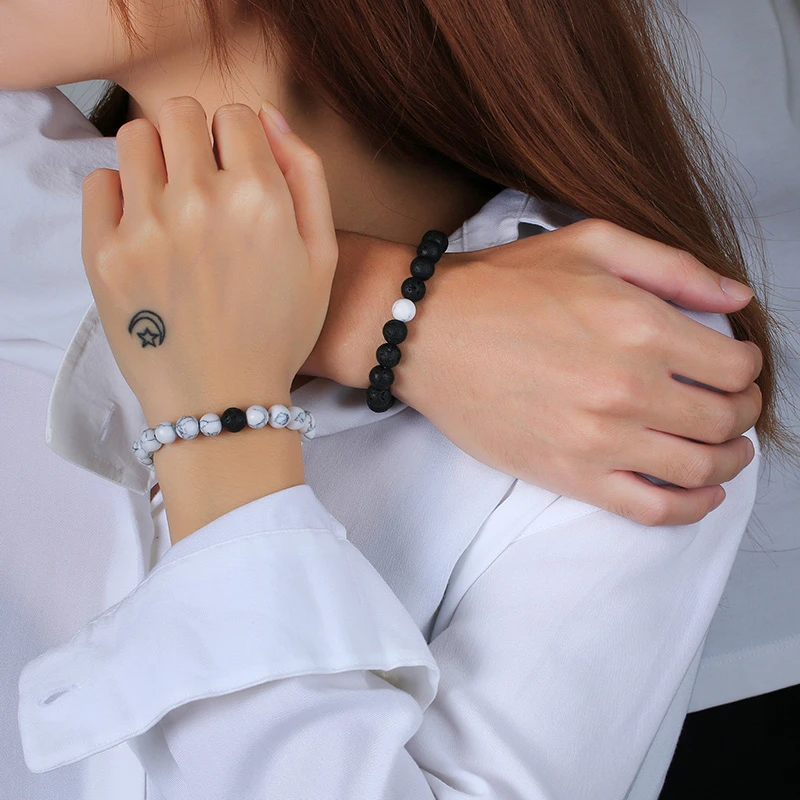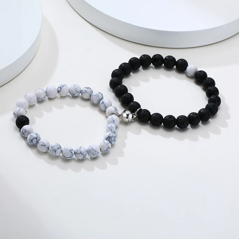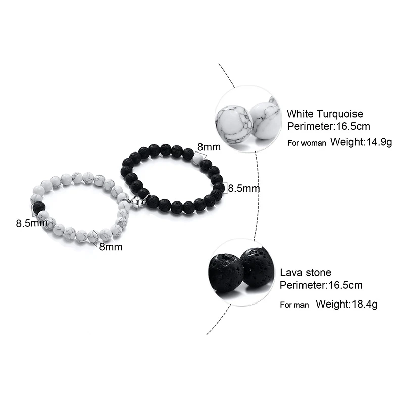 Vnox Women Men Attractive Couples Charm Bracelets 8 MM Natural Volcanic Stone Beads Valentine’s Day Anniversary Gifts Jewelry