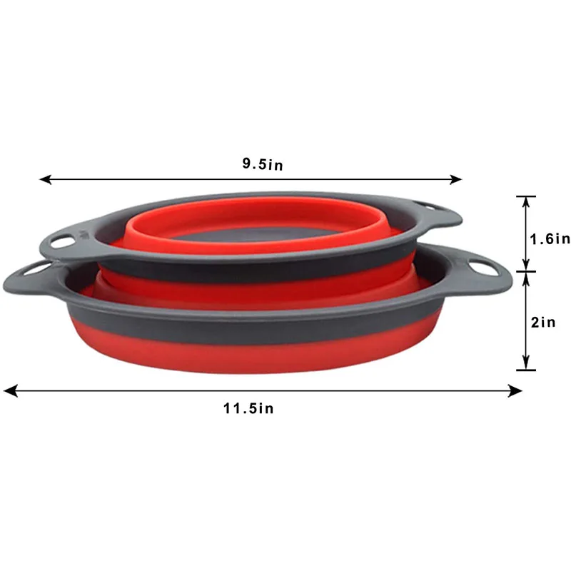 WALFOS 2 pieces Foldable silicone Collapsible Kitchen Colander Kitchen Tools Fruit Vegetable Strainer Drainer Washing Basket