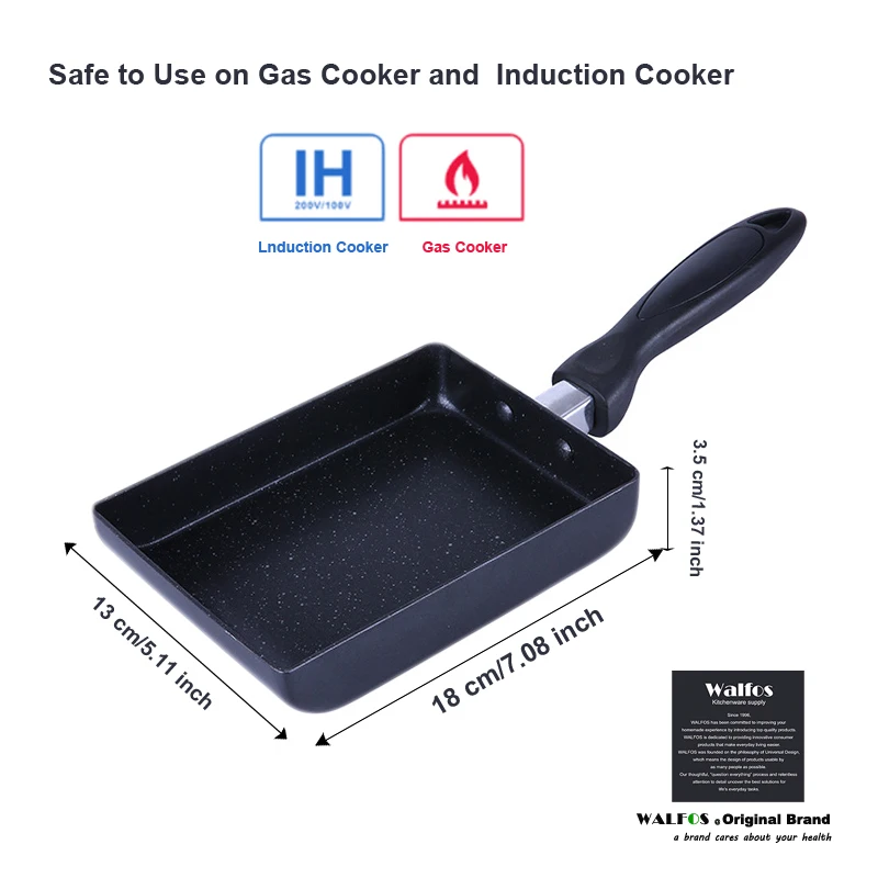 Walfos Frying Pan Tamagoyaki Omelette Black Non-stick Pan Fry Egg Pan Pancake Kitchen Pot Use for Gas Cooker