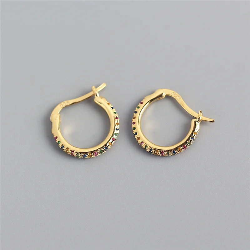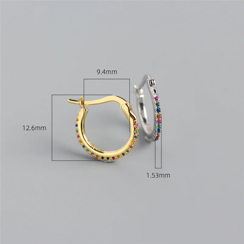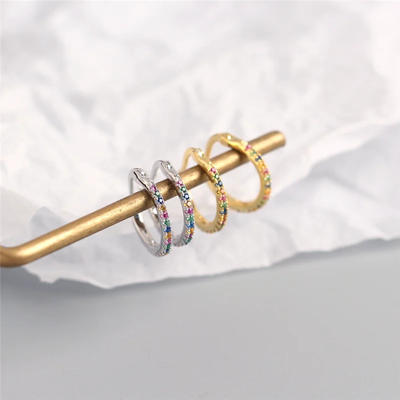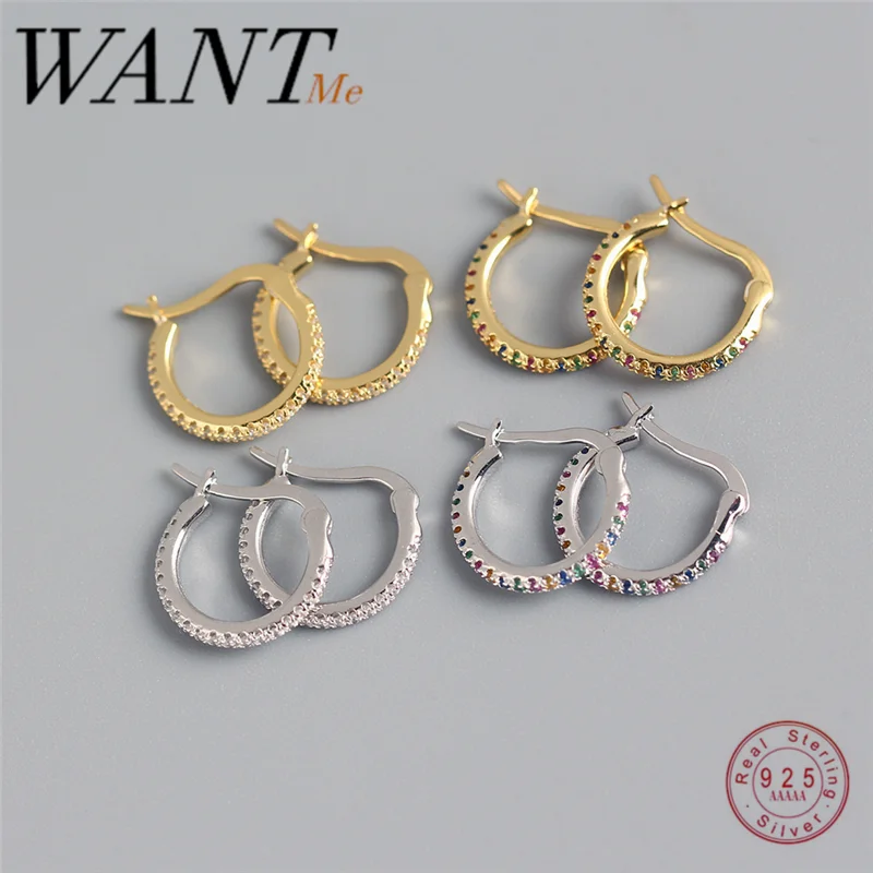WANTME Genuine 925 Sterling Silver Minimalist Round Rainbow CZ Zircon Hoops Crystal Huggies Earring For Women Piercing Bijoux
