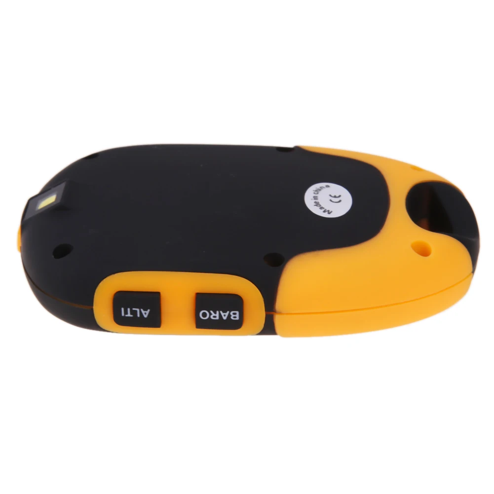 Adopt super-accuracy sensor from Swiss. Altitude total gain/loss, 24 hours altitude record and chart. Max/min altitude, temperature, huminity record. 24 hours air pressure trend chart. Incorporates altimeter, barometer, compass functions, etc. Thermometer, hygrometer, time, date, alarm clock, LED torch. Built-in rechargable battery. LCD backlit. IPX 4 waterproof. Specifications: Altimeter: Altimeter range(-700 to 9000m/-2296 to 29500ft) Resolution of 1 meter/feet Max./Min. memory for altitude Altitude history and graphical display of the last 24 hour altitude readings Altitude total gain or loss 44999 meter/feet Barometer: Pressure range 300hpa to 1100hpa(8.84inHg to 32.44inHg) Resolution of 0.1hpa(0.01inHg) 24 hour pressure history and graphical display Electronic pressure weather forecast(sunny, slightly cloudy, cloudy, rainy) Pressure trend indicators Thermometer: Range from -20℃ to℃ (-4℃ to 140℃) Max./Min. memory for temperature Hygrometer: Relative humidity(20% – 95%) Max./Min. memory for relative humidity Package: Material: Plastic Color: Black + yellow Built-in battery: 300mAh Item size: 10 * 6.5 * 2cm / 3.9 * 2.6 * 0.8in Item weight: 70g / 2.5oz Package size: 16 * 11 * 3.5cm / 6.3 * 4.3 * 1.4in Package weight: 128g / 4.5oz ![]() 1 * Altimeter