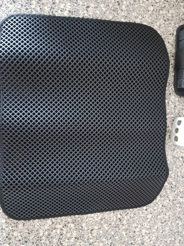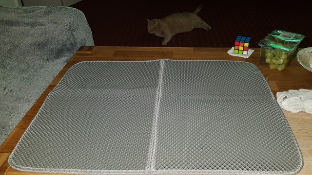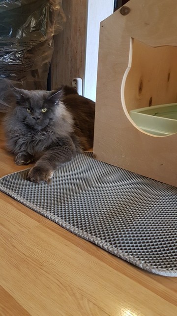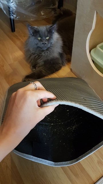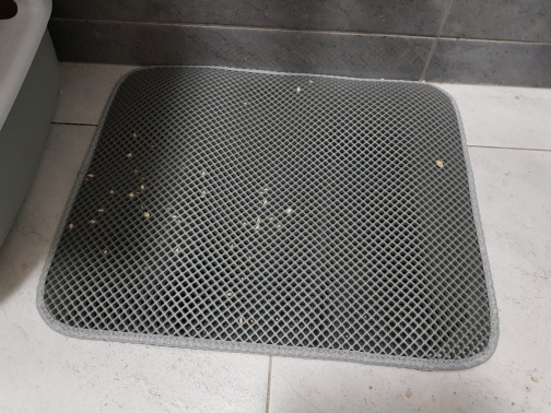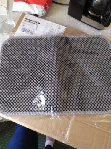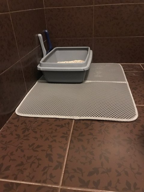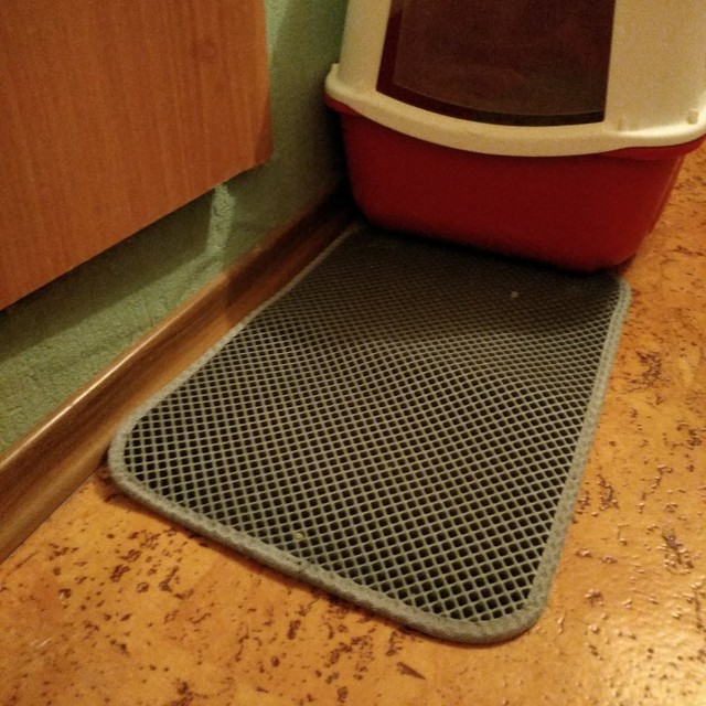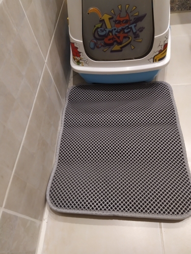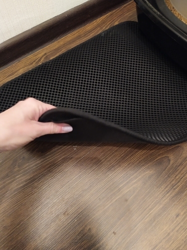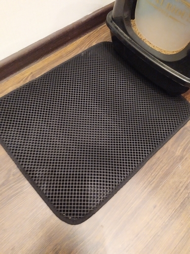 The carpet is magic. There was no rescue from sawdust until they bought this miracle. They still exist, but at times less. For the best result it was necessary to take the carpet more, that wherever the cat stepped out of the tray, would fall on the carpet. Then i will order a larger size. In my photos the carpet is 50 × 40. It’s very light. The material of the honeycomb is not rubber, but some light and porous, sponge. There was a strong smell, but after a day on the balcony everything became ok. Delivery to mo was long. The courier brought sdek home. I recommend to buy, but take a big size!