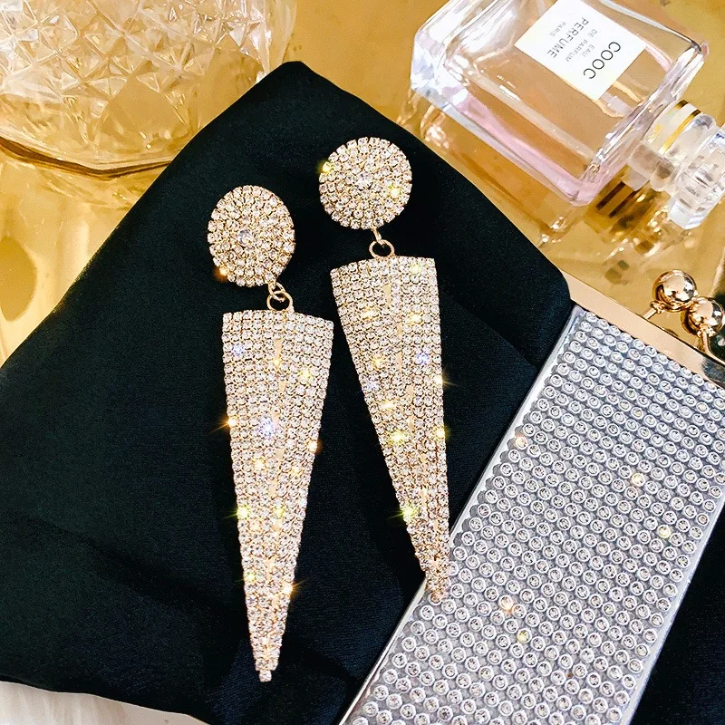 Rhinestone Statement Earrings Geometric Big Round Stud Earrings For Women Crystal Luxury Wedding Gift