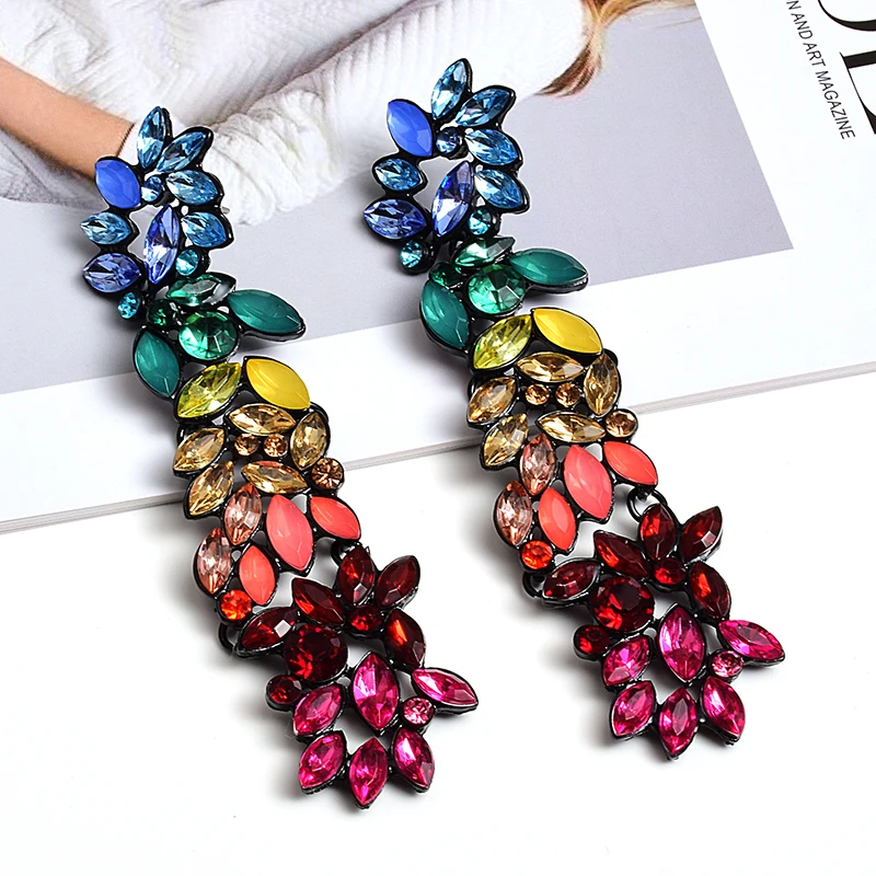 Wholesale Colorful Crystals Long Drop Earrings For Women Fine Jewelry Accessories Dangling Pendientes Bijoux Christmas Gift