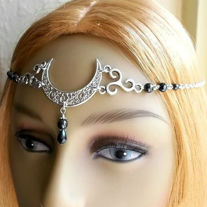 Moon Gothic Chains O Ring Choker Black Moon Necklace, Crescent Moon Pendant