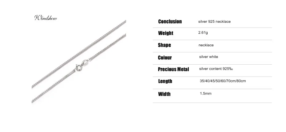 Windshow 14″-32″ 925 Sterling Silver Popcorn Chain Short Choker Necklace Women Girls Jewelry Colar Collier Collares Mujer Kolye