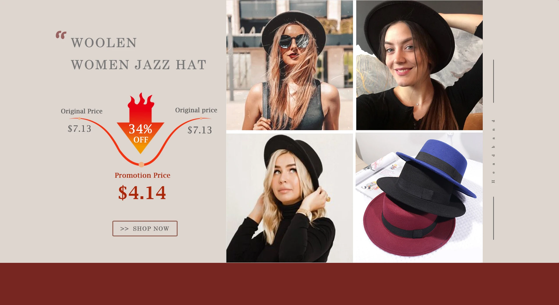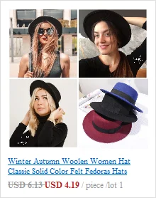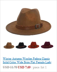 Winter Autumn Woolen Women Hat Classic Solid Color Felt Fedoras Hats Female Lady Wide Brim Flat Top Jazz Cap