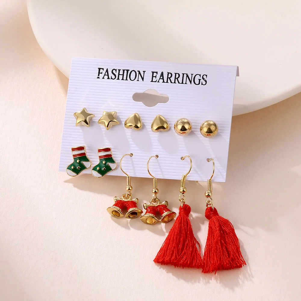 Winter Pearl Tassel Christmas Earring Set Fashion Snowflake Tree Geometric Alloy Earrings Female Child Christmas Jewelry серьги