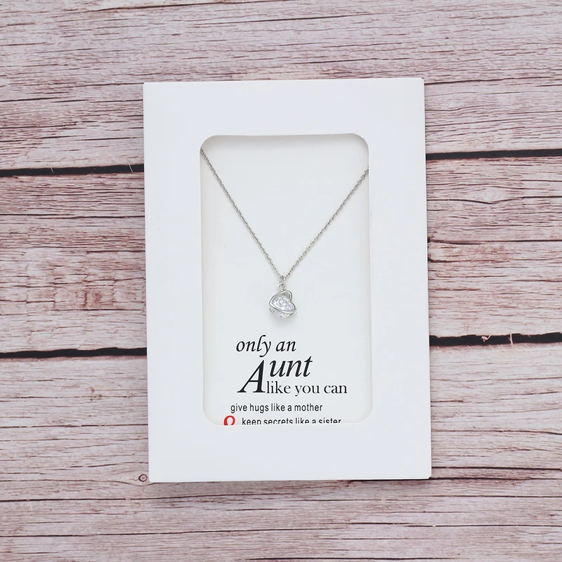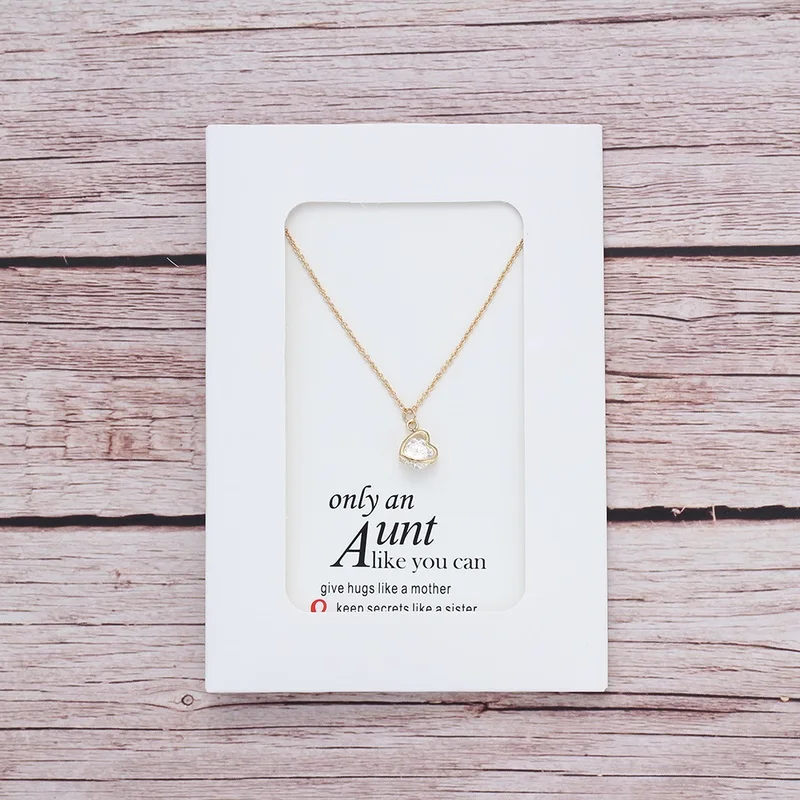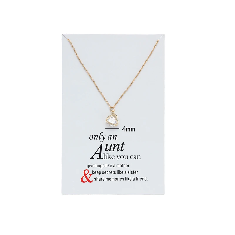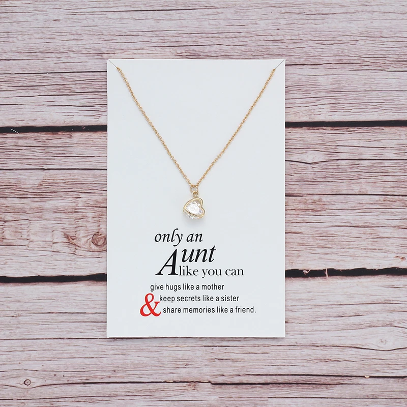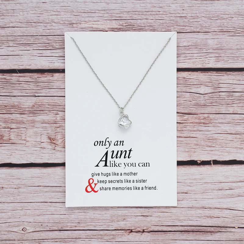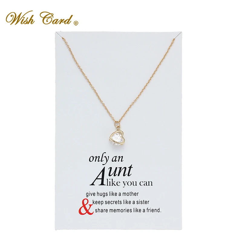 Wish Card From Aunt Love Heart Crystal Necklace for Women Jewelry Friendship Aunt Gifts with Card Adjustable Chian CN70
