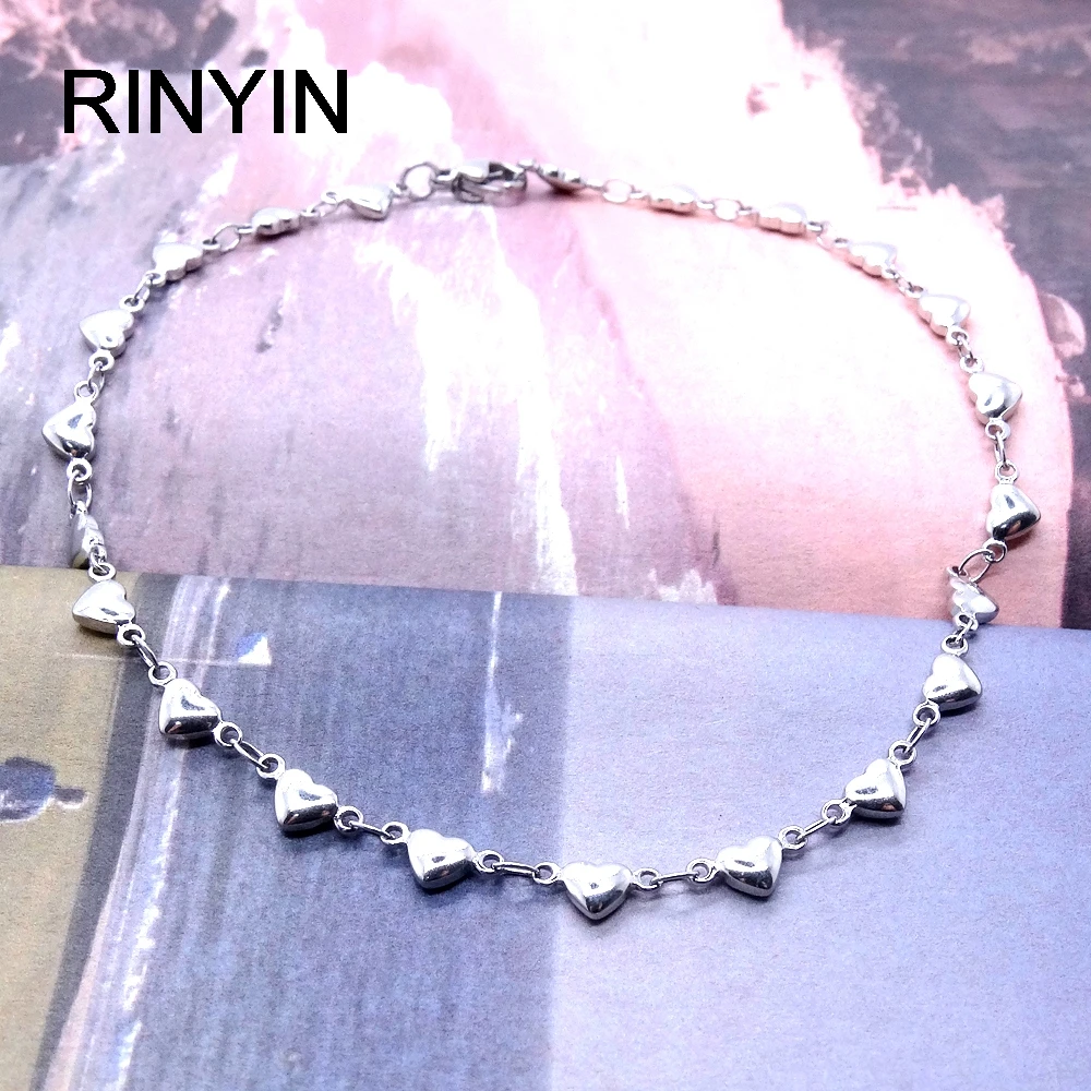 Women Ankel Bracelets Stainless Steel Anklets Heart and Heart Charm 9/10/11 Inches Cute Fashion Jewelry Factory Offer