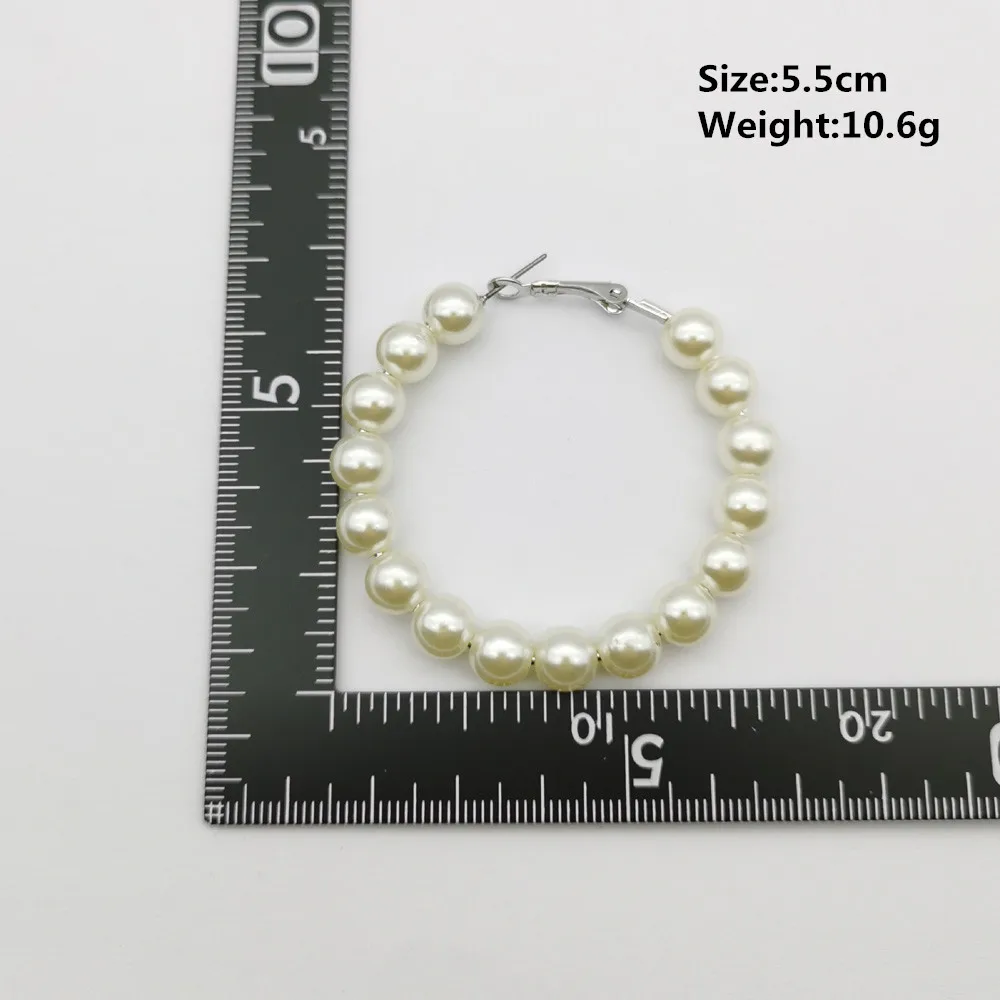 Women Elegant White Pearl Round Circle Hoop Earring Oversize Pearl Geometric Ear Rings Fashion Jewelry