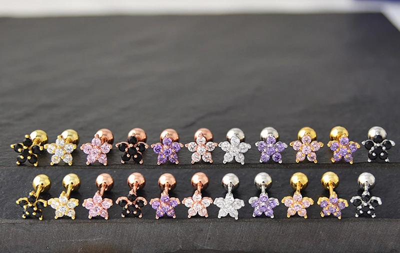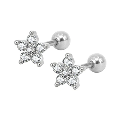 Women’s Fashion Stainless Steel Minimal Stud Earrings Round Zircon Stone Stud Small Cartilage Ear Piercing Jewelry